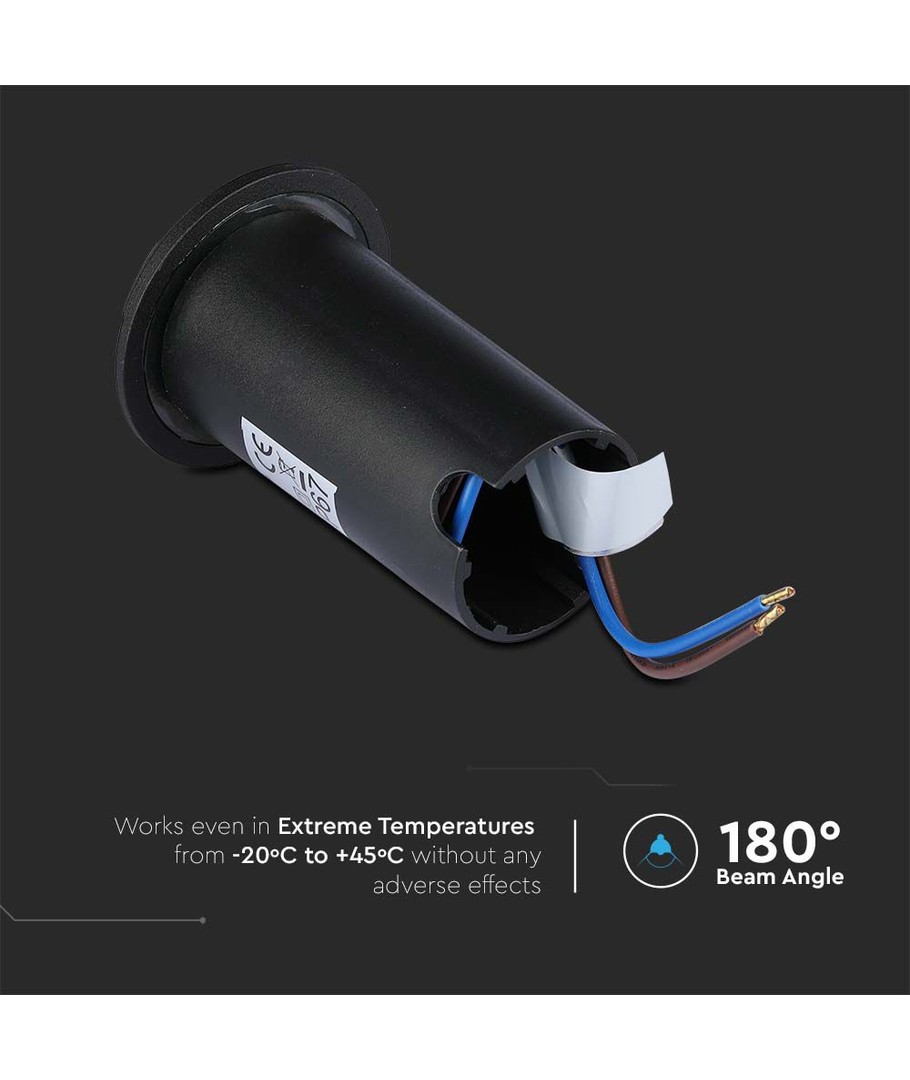 Den svarta färgen på markspoten smälter diskret in i de flesta utomhusmiljöer, vilket ger en stilren och elegant estetik till alla belysningsprojekt.