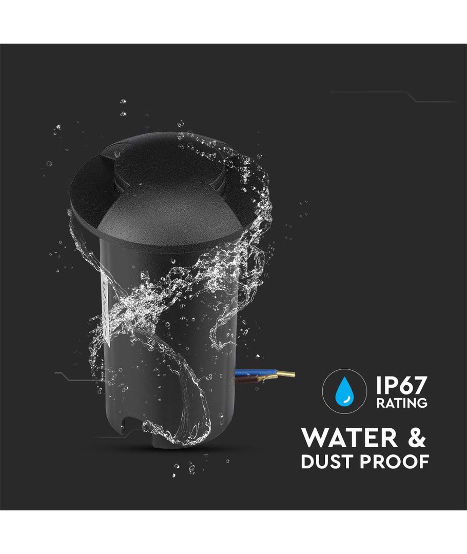 Med en IP67-klassificering är markspoten vattentät, vilket gör den idealisk för användning i olika utomhusmiljöer. Notera dock att den inte är avsedd för att ligga under vatten under längre perioder.