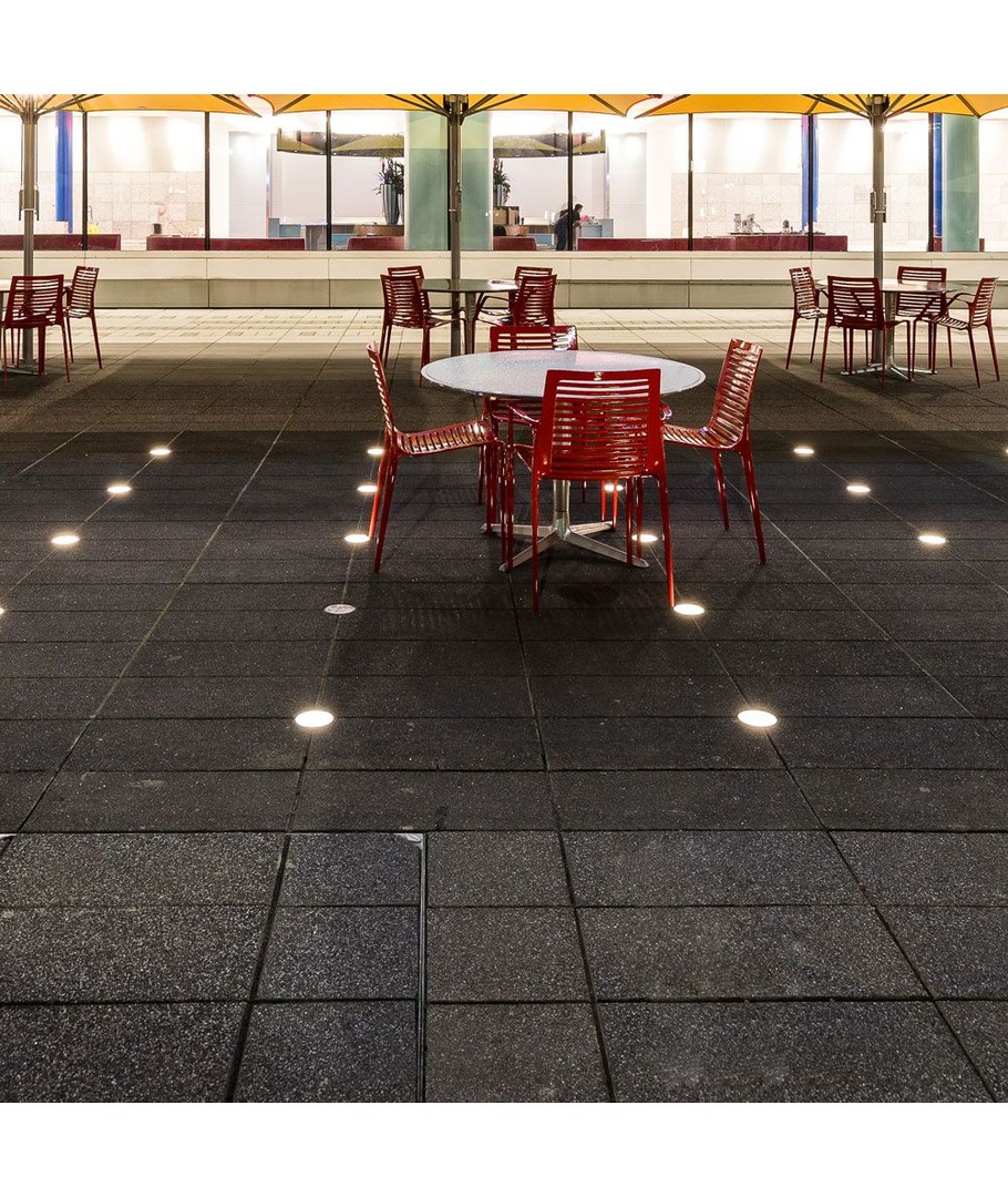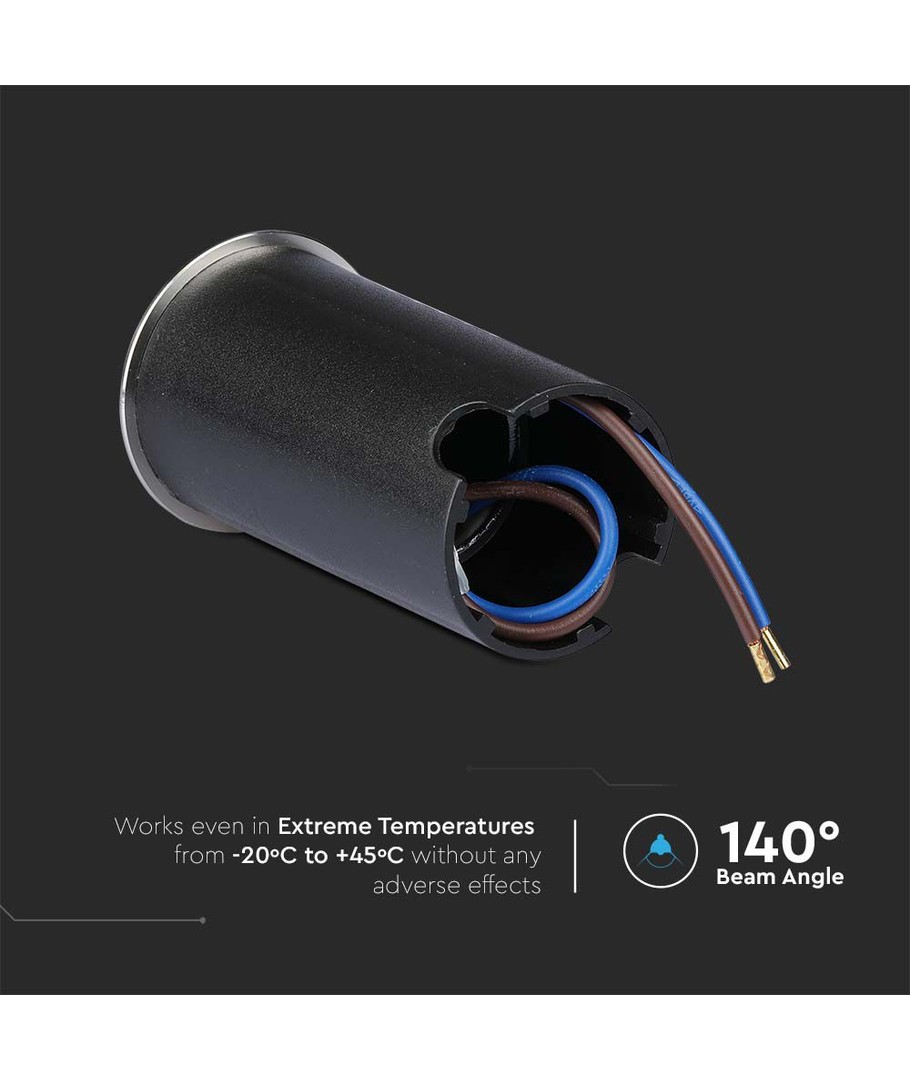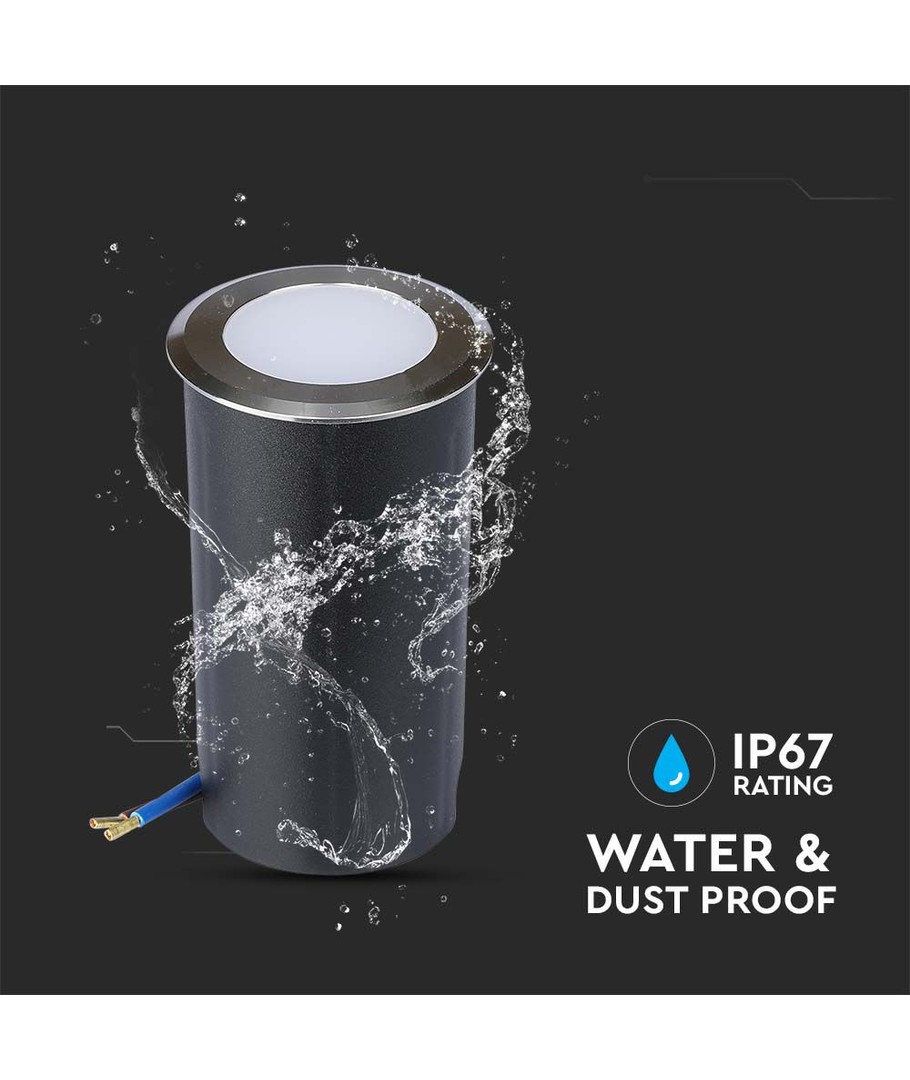 Med en IP-klassning på IP67 är denna nedgrävningsspot vattentät och kan användas utomhus. Dock bör den inte placeras där den konstant ligger under vatten. Den har en integrerad ljuskälla vilket ytterligare förenklar installationen och användningen.