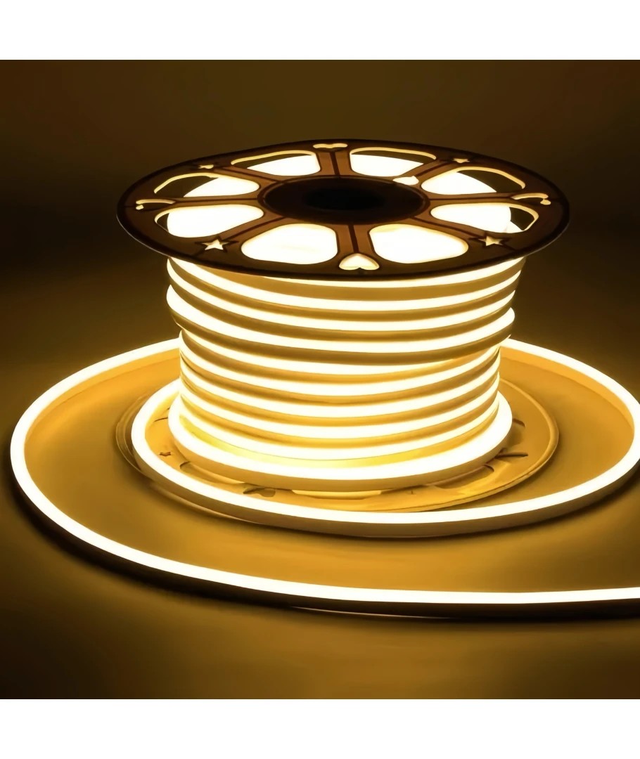 Förvandla ditt utrymme med den mångsidiga och effektiva 9W per meter varmvit Neon Flex LED. Denna belysningslösning är perfekt för dem som söker en jämn och inbjudande ljusfördelning.
