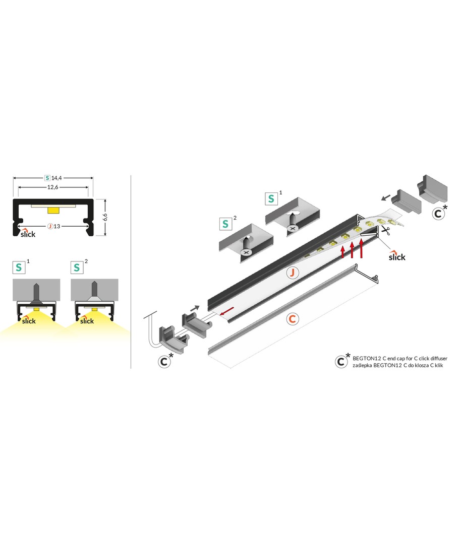 Obehandlad aluminium, påbyggnad, LED kanal