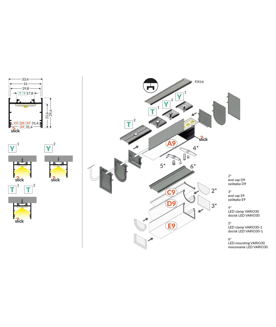 1m aluprofil VARIO30-02 ACDE-9/TY