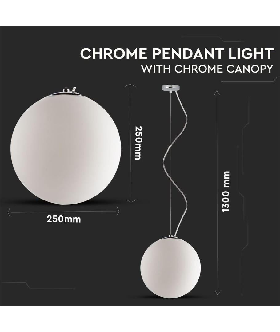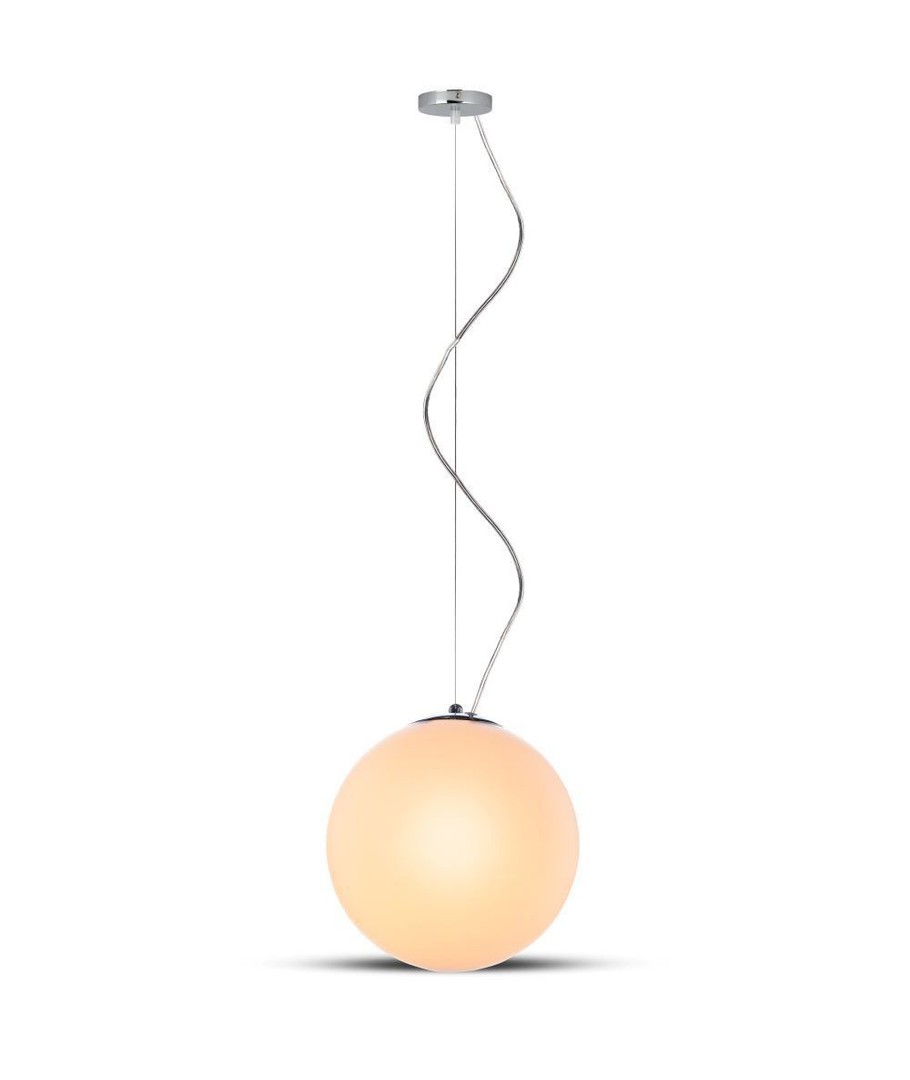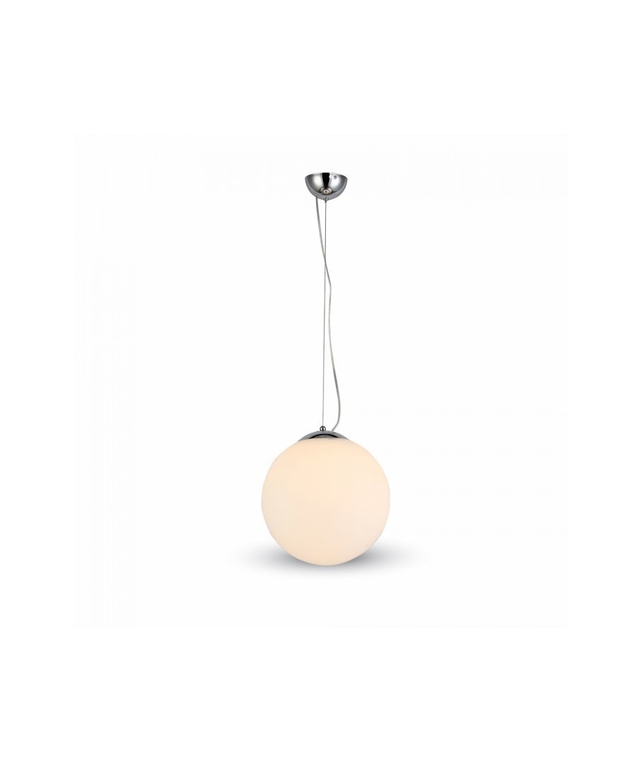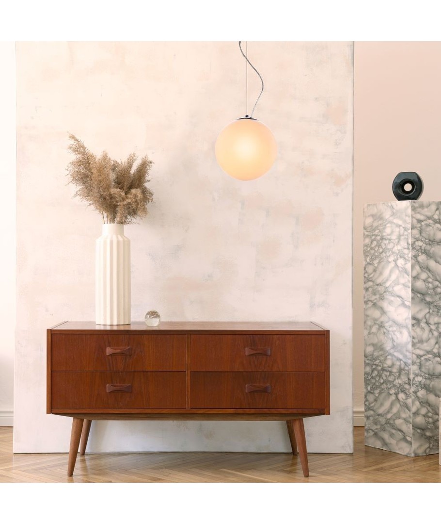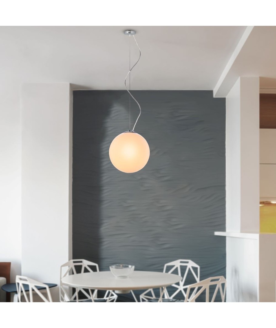 Superfin och traditionell pendellampa. Själva lampan är gjord av glas och är rund som en kula.