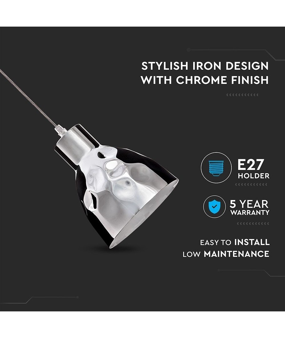 Vår koppar pendellampa i krom erbjuder en perfekt kombination av stil och funktion. Dess kompakta storlek på Ø15 cm och förmågan att hantera upp till 60W ljuskällor gör den till en mångsidig lösning för olika belysningsbehov. Den enkla installationen, tillsammans med dess eleganta design, gör den till ett utmärkt val för den modemedvetna konsumenten. För dem som värdesätter både form och funktion, är denna lampa ett obestridligt tillskott till hemmet.