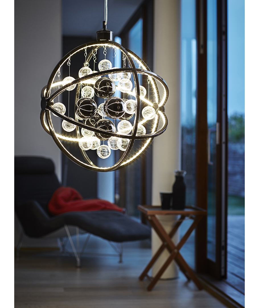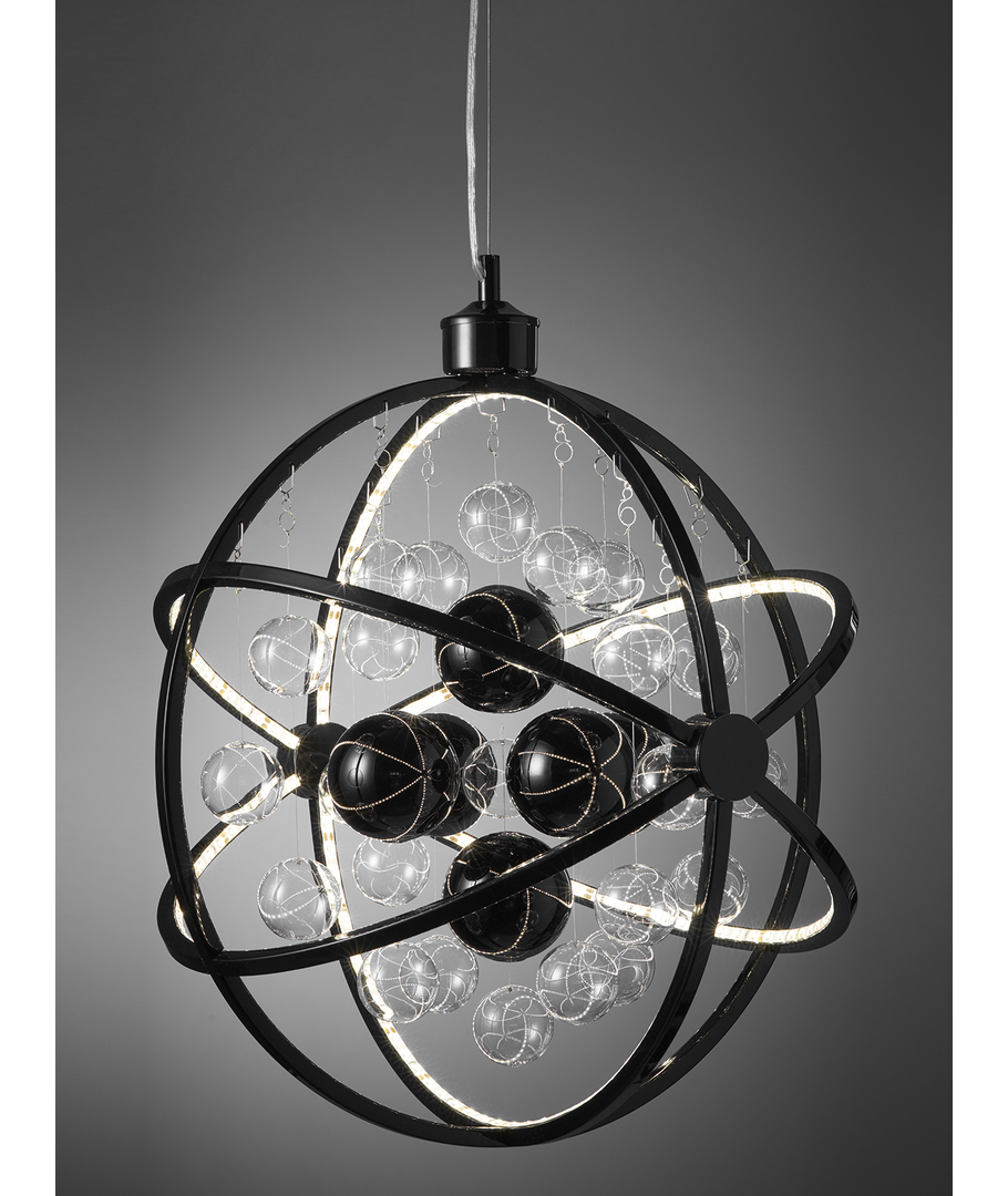 Galaxy Pendel i svart färg är utförd i metall och glas, en annorlunda och fantastiskt snygg LED taklampa. Lampan har en futuristisk design och som namnet beskriver ger den associationer till galaxen.