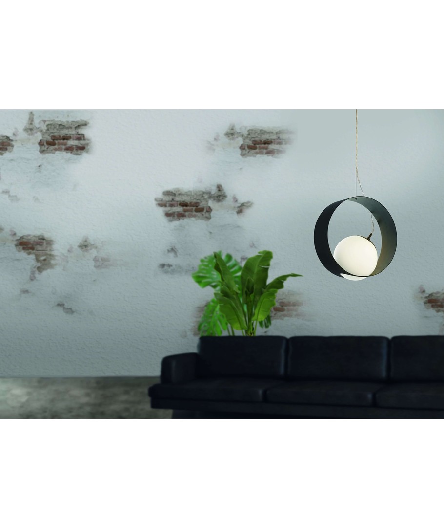 Smuk pendel lampe i nytænkende design til E27 pærer af glas og sort stål.