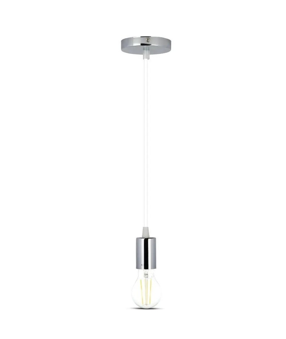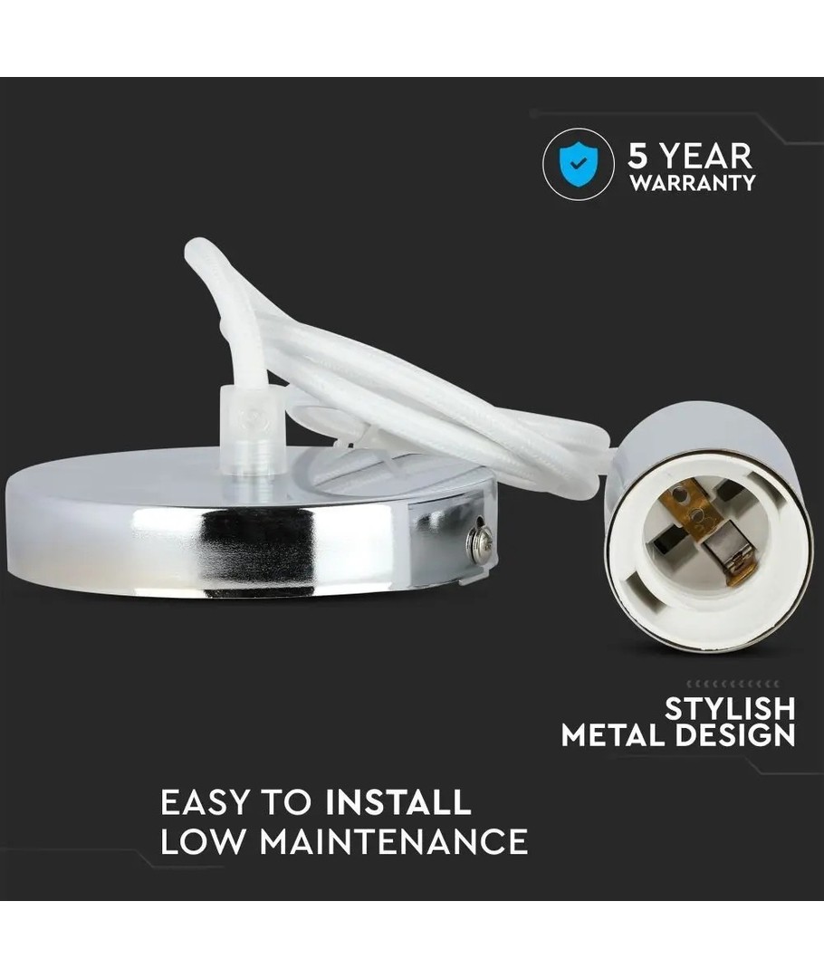 Förvandla ditt hem med en stilfull och funktionell armaturlösning som inte bara ger ljus utan även tillför en känsla av modernitet. Denna armatursockel är en perfekt kombination av krom metall och en vit ledning, vilket ger en ren och stilren estetik som passar i varje rum.