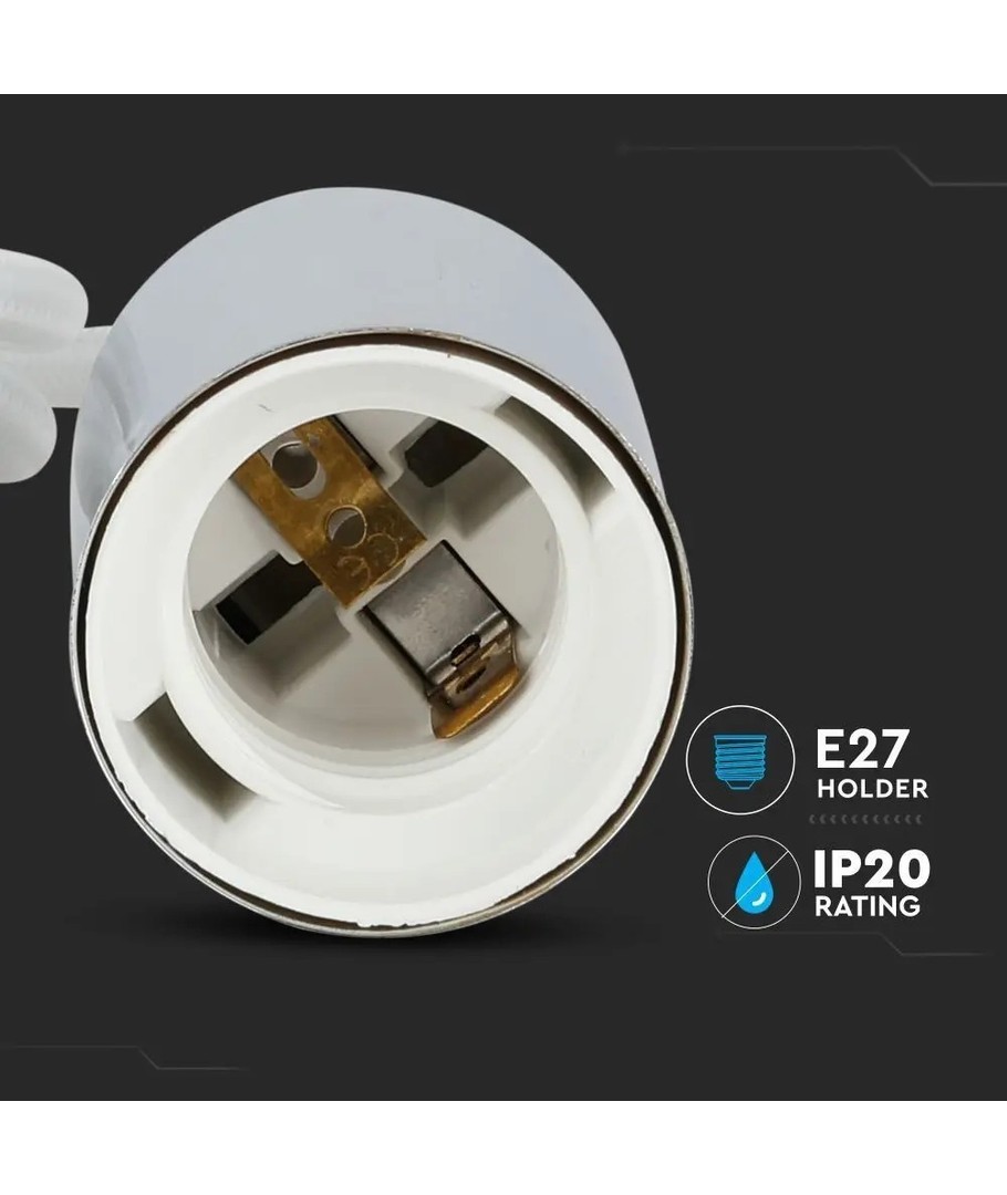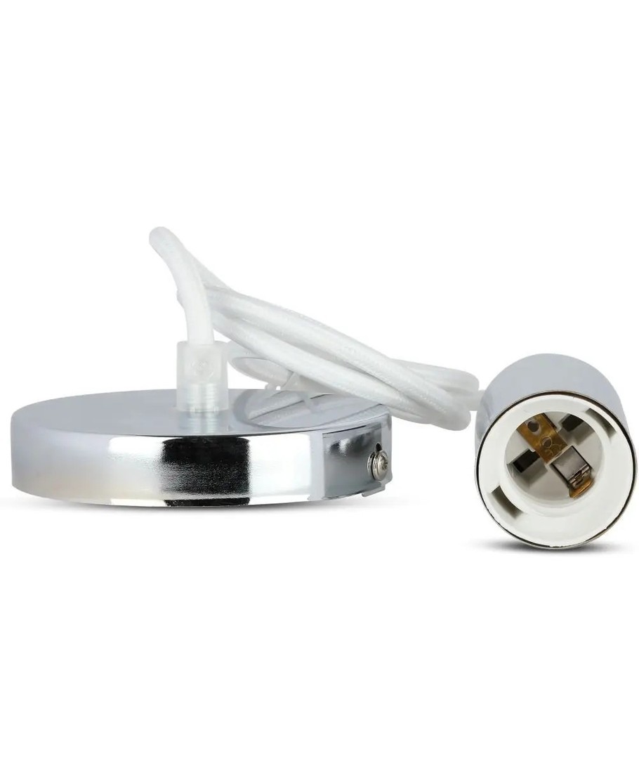 Denna armatursockel är tillverkad i högkvalitativ krom metall, vilket ger den både en elegant och robust karaktär. Med sin E27-stora sockel har du möjlighet att använda en mängd olika ljuskällor, vilket ger dig friheten att anpassa belysningen efter ditt behov och preferens. Observera att ljuskälla inte ingår, vilket ger dig möjligheten att välja den ljuskälla som bäst passar ditt hem.
