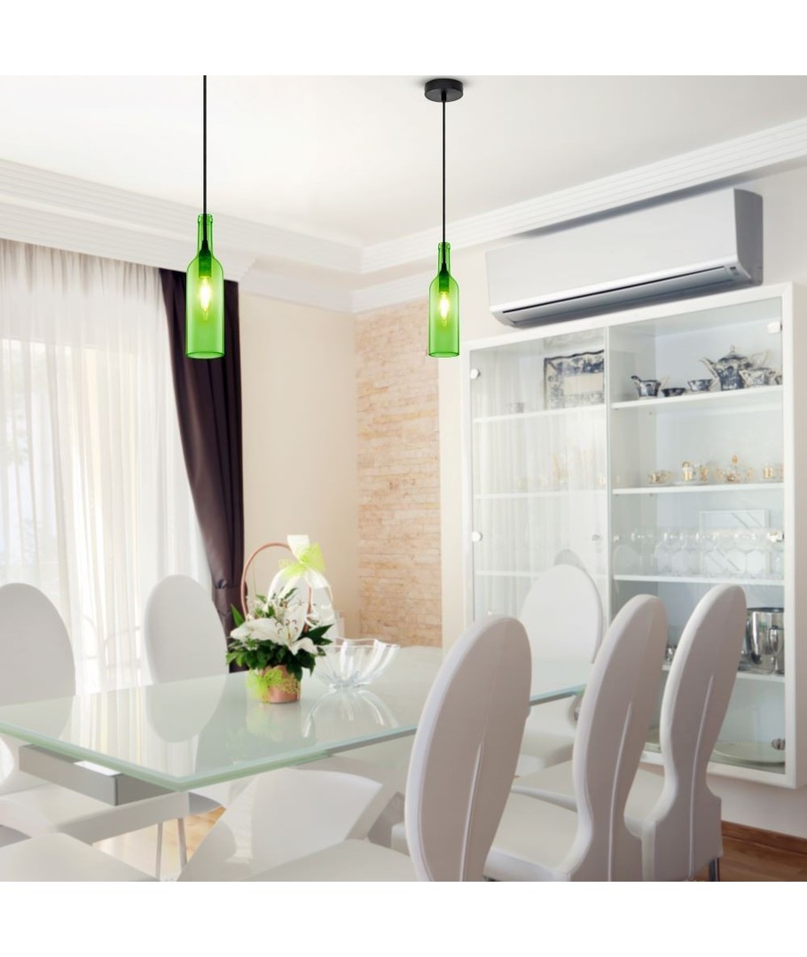 Unik lampa för grön glasflaska som ger en fin effekt när ljuset är på.