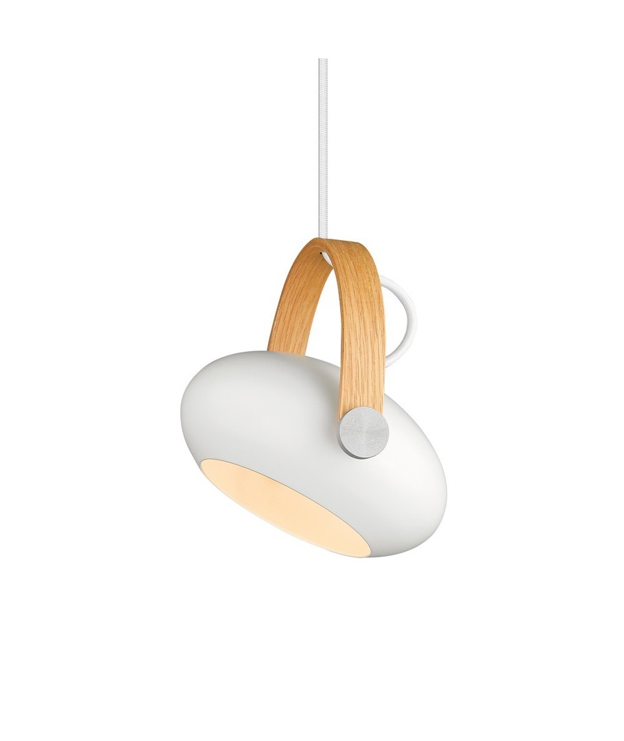 Denna smakfulla pendellampa kombinerar vita toner med naturliga inslag av ek för att skapa en stilren och tidlös belysningslösning. Passar perfekt i både moderna och klassiska inredningar.