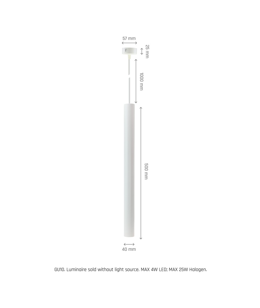 GU10-lampan måste vara Ø35mmPendellampan tillför en modern och stilren atmosfär till vilket utrymme som helst. Dimensionerna på denna lampa är 500 mm i höjd och 40 mm i diameter, vilket gör den till ett diskret men effektivt tillskott i både små och stora rum.
