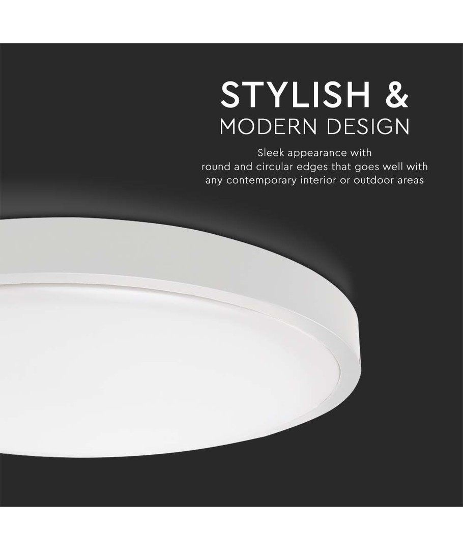 Upptäck en elegant och funktionell LED taklampa som erbjuder en kraftfull belysningslösning för ditt hem eller arbetsutrymme. Med sina kompakta dimensioner på Ø29,5 cm och en höjd på 5,5 cm, passar denna lampa perfekt i alla tak.