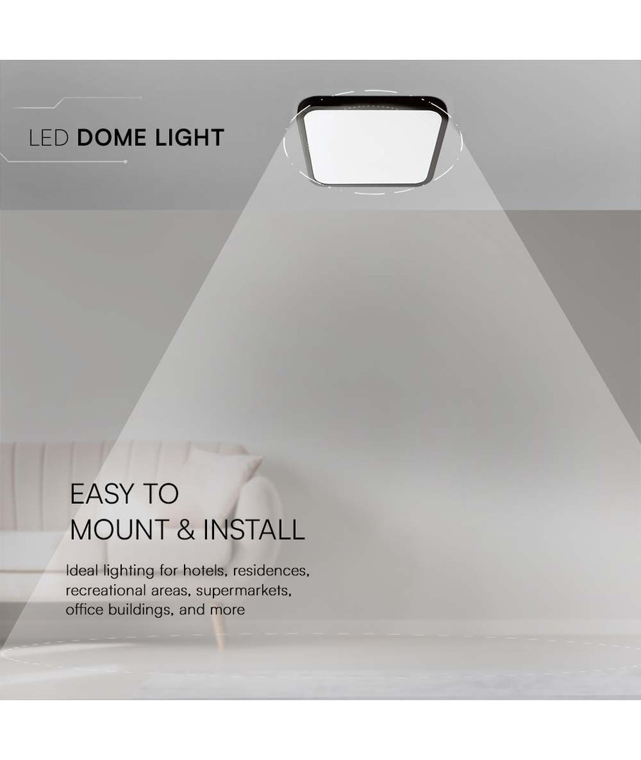 Denna LED-taklampa är det perfekta valet för dig som söker en effektiv och stilren belysningslösning. Med en kompakt storlek på 29,5 x 29,5 cm och en eleganta svart kant, passar den perfekt i alla moderna hem.