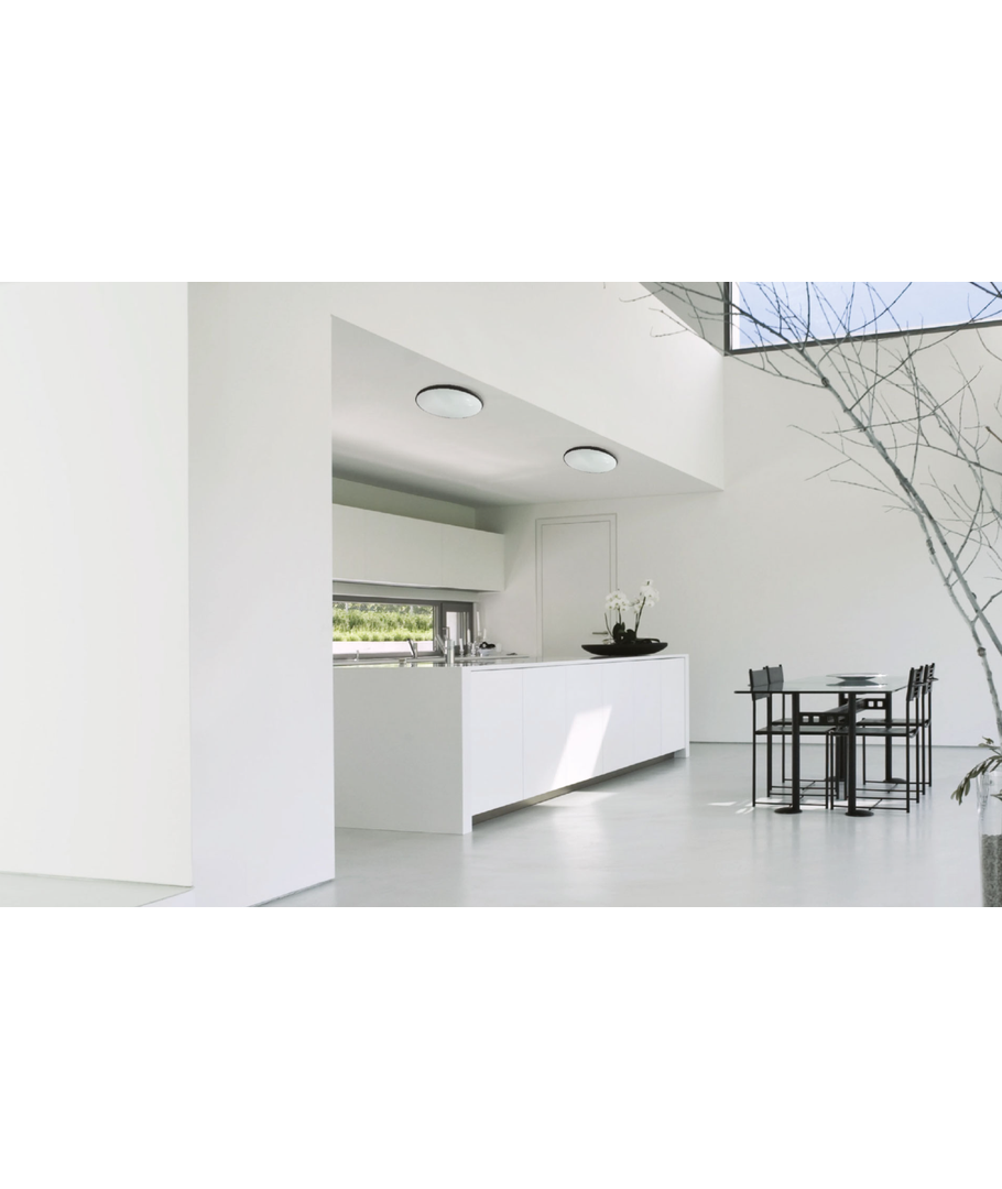 Denna taklampa är utrustad med IP54-klassificering, vilket innebär att den står emot både fuktig luft och vattenstänk, vilket gör den idealisk för badrum och andra fuktiga miljöer.