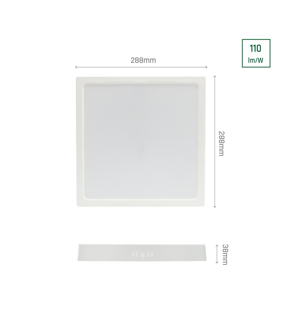 Den stilrena och effektiva LED taklampan är designad för att passa både hem och kontor. Med sina dimensioner på 29 x 29 cm och en diskret höjd på 3,8 cm, smälter den lätt in i olika interiörer.
