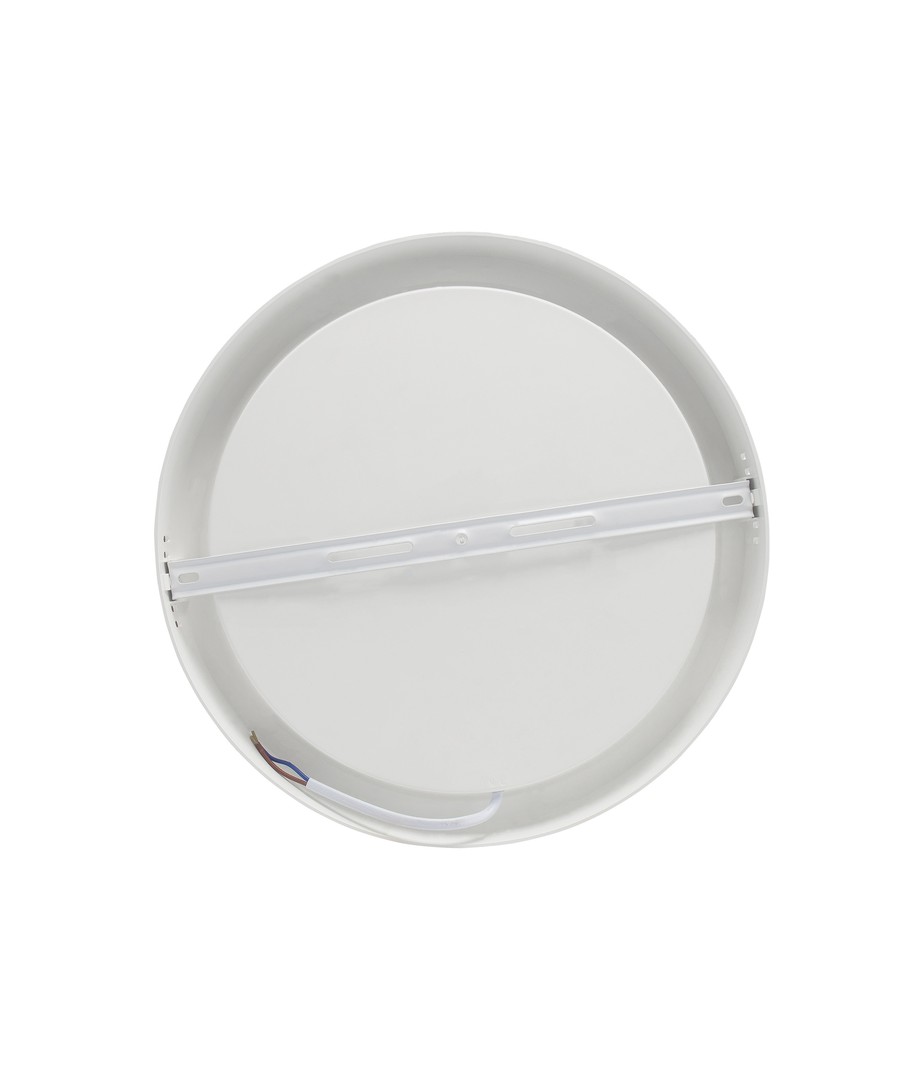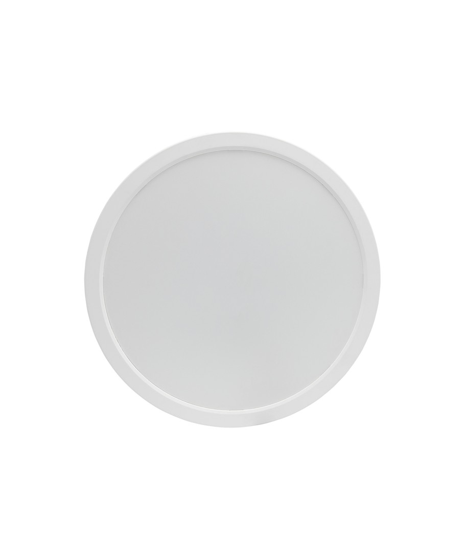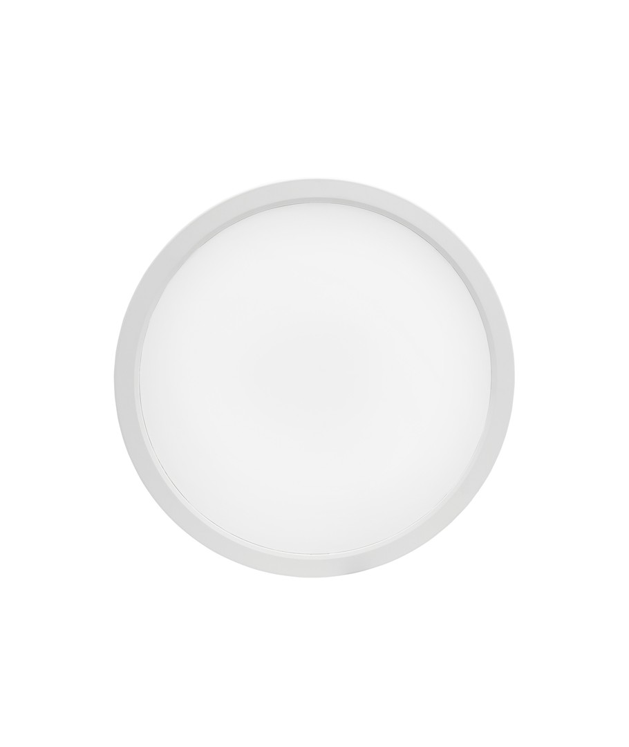 Denna stilrena lampa har en vit kant och mäter Ø29 cm i diameter och 3,8 cm i höjd. Den låga profilen gör att den passar i de flesta rum utan att ta mycket plats.