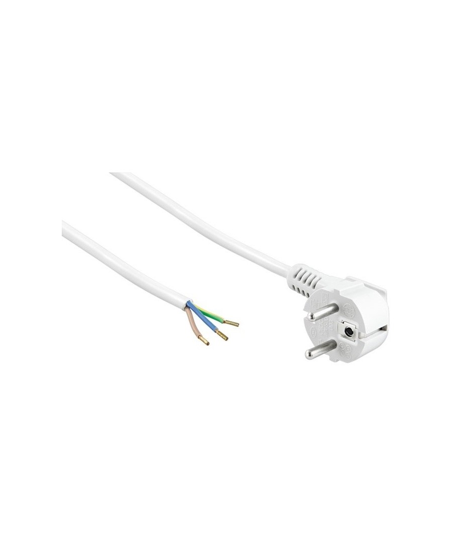 1,5 meter vit strömkabel med schuko-plugg och strippade ledningar.