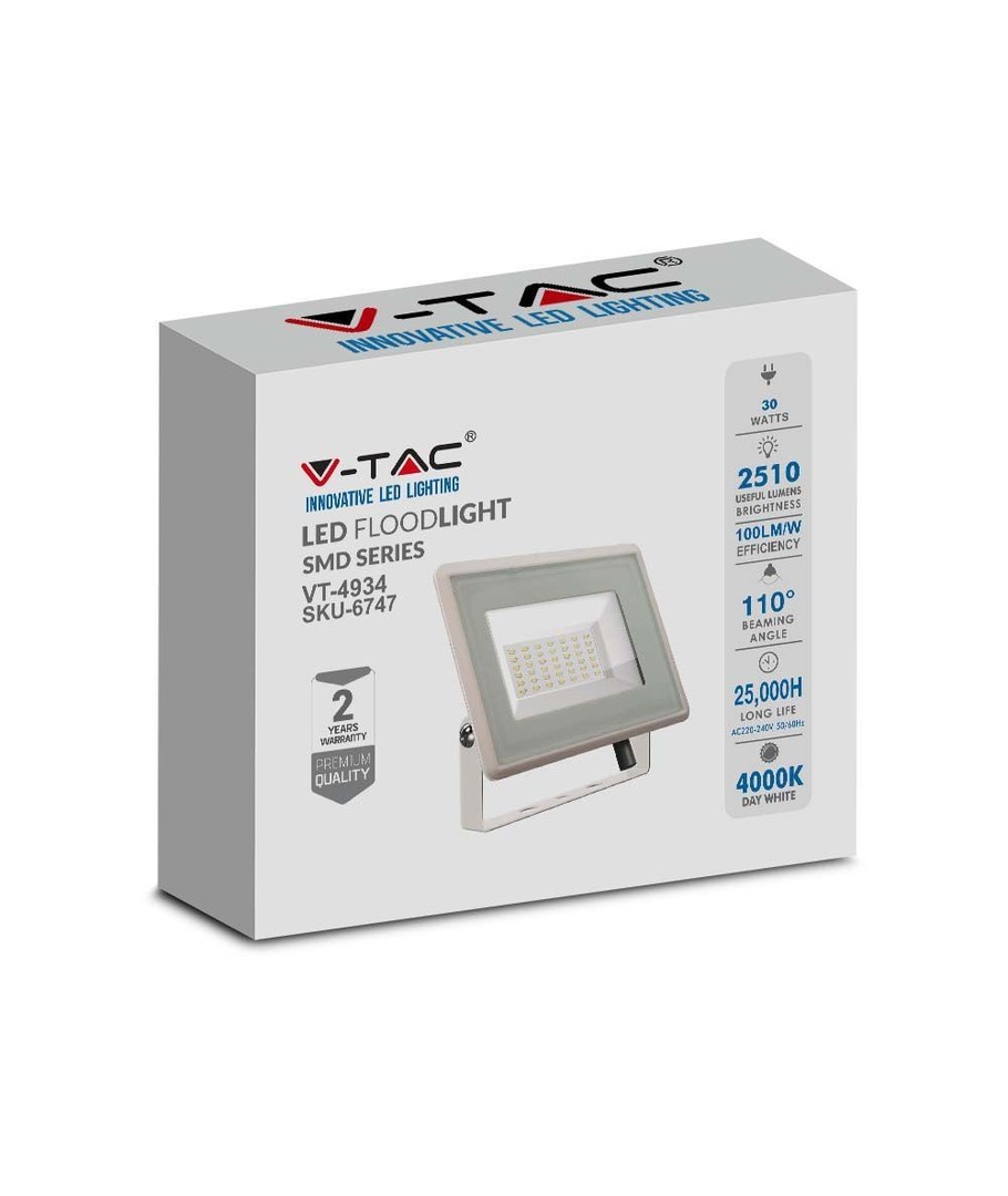 Denna mångsidiga 30W LED-strålkastare är perfekt anpassad för både arbetsmiljöer och utomhusbruk. Med en anslutning på 230V och en ljusstyrka på 2510 lm tillsammans med en bred spridning på 110 grader säkerställs en jämn och effektiv ljusfördelning. Detta gör den idealisk för att belysa större ytor med precision.