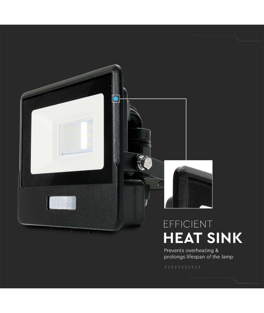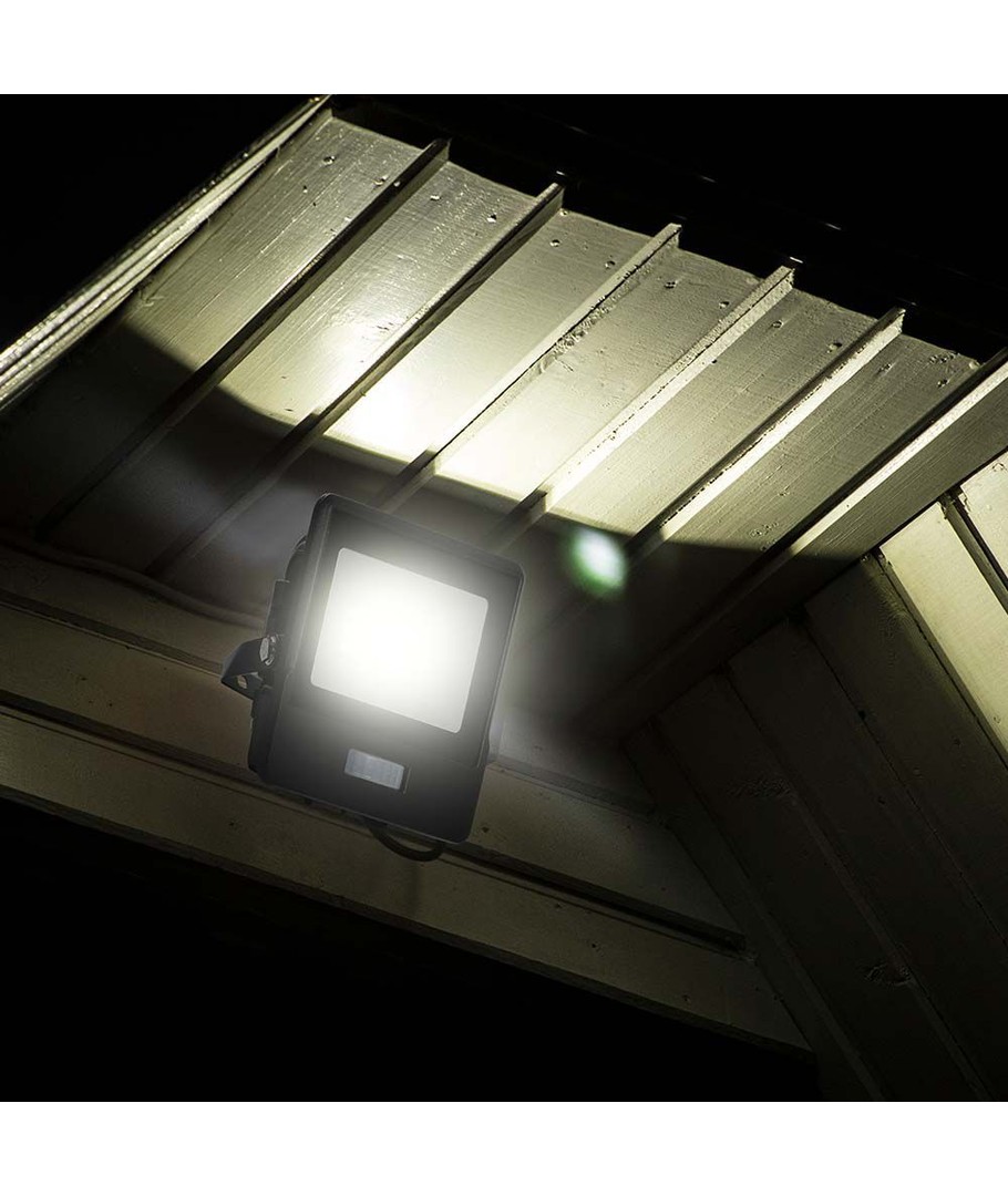 Robust byggd strålkastare med inbyggd PIR-sensor.