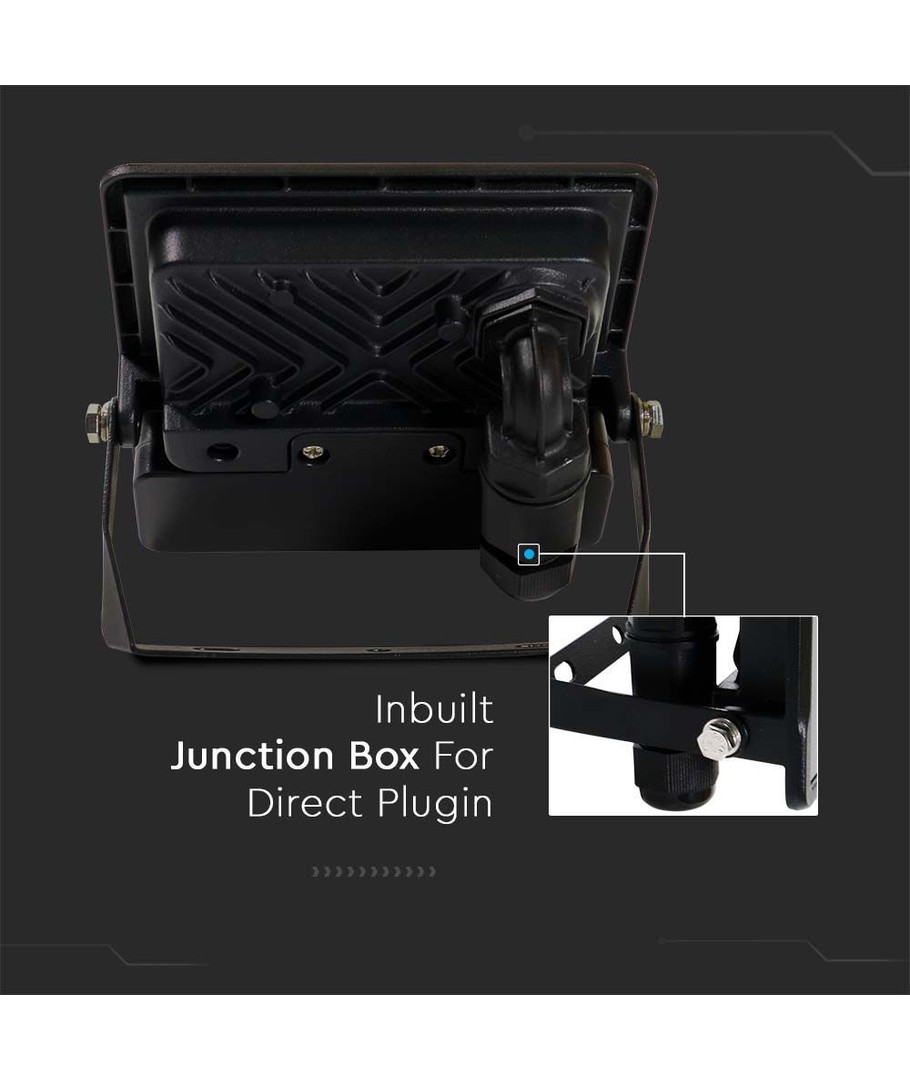 På baksidan av strålkastaren finns en inbyggd kopplingsdosa, där kabeln kopplas till strålkastaren.