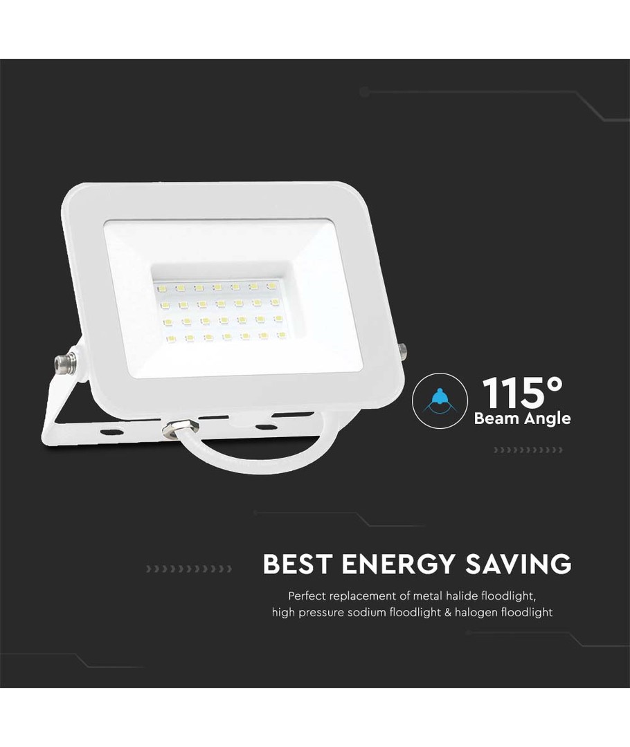 Denna strålkastare erbjuder en imponerande effekt på 30W och är försedd med ett Samsung LED-chip, vilket garanterar hög kvalitet och tillförlitlighet. Med en ljusstyrka på 2850 lm kombinerad med en bred spridning på 115 grader säkerställs en jämn och effektiv ljusfördelning, lämplig för en mängd olika användningsområden.