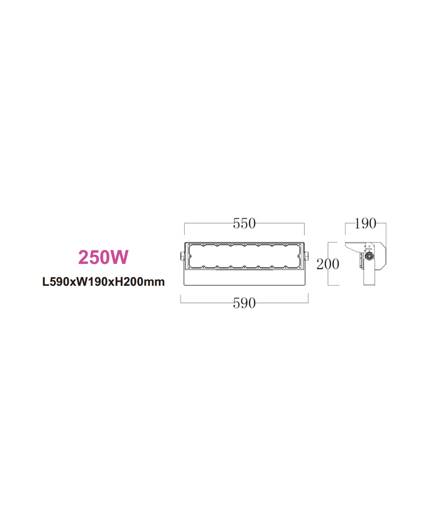 Sammanfattningsvis, erbjuder denna 250W strålkastare hög prestanda och hållbarhet för en mängd olika användningsområden, från sportarenor till industriområden. Köp den för att uppleva kvalitet och tillförlitlighet i världsklass.