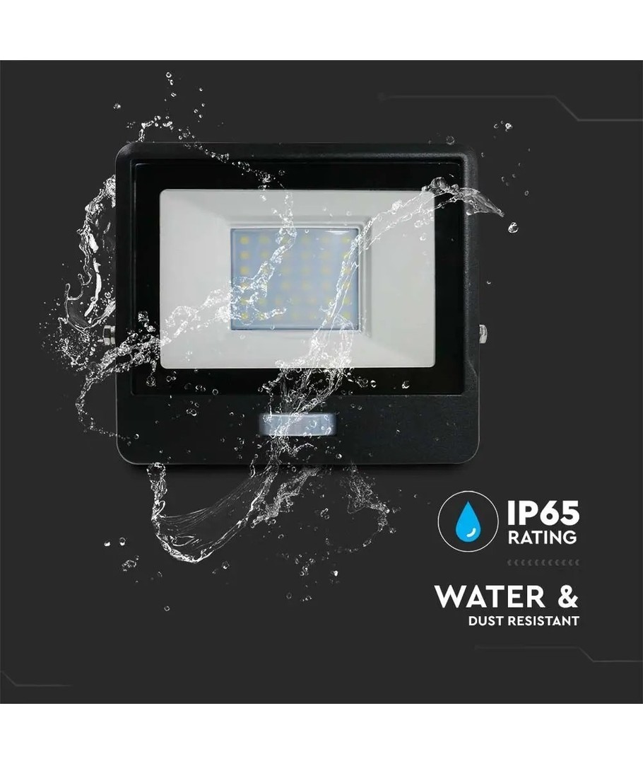 Robust byggd strålkastare med inbyggd PIR-sensor.
