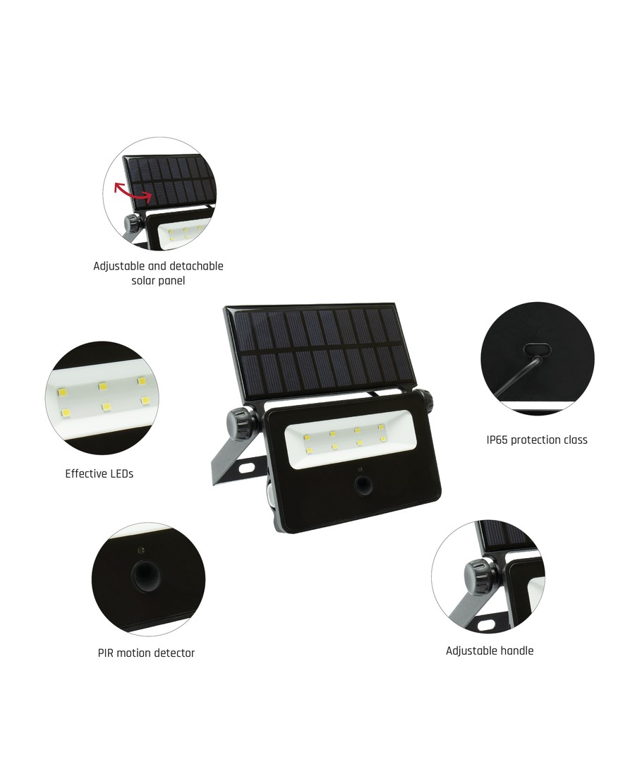 Strålkastaren kan enkelt placeras på gården, i trädgården, vid garageuppfarten eller på byggarbetsplatsen. Den automatiska sensorn, driven av solenergi, hjälper till att minska energikostnaderna och minskar ditt koldioxidavtryck.