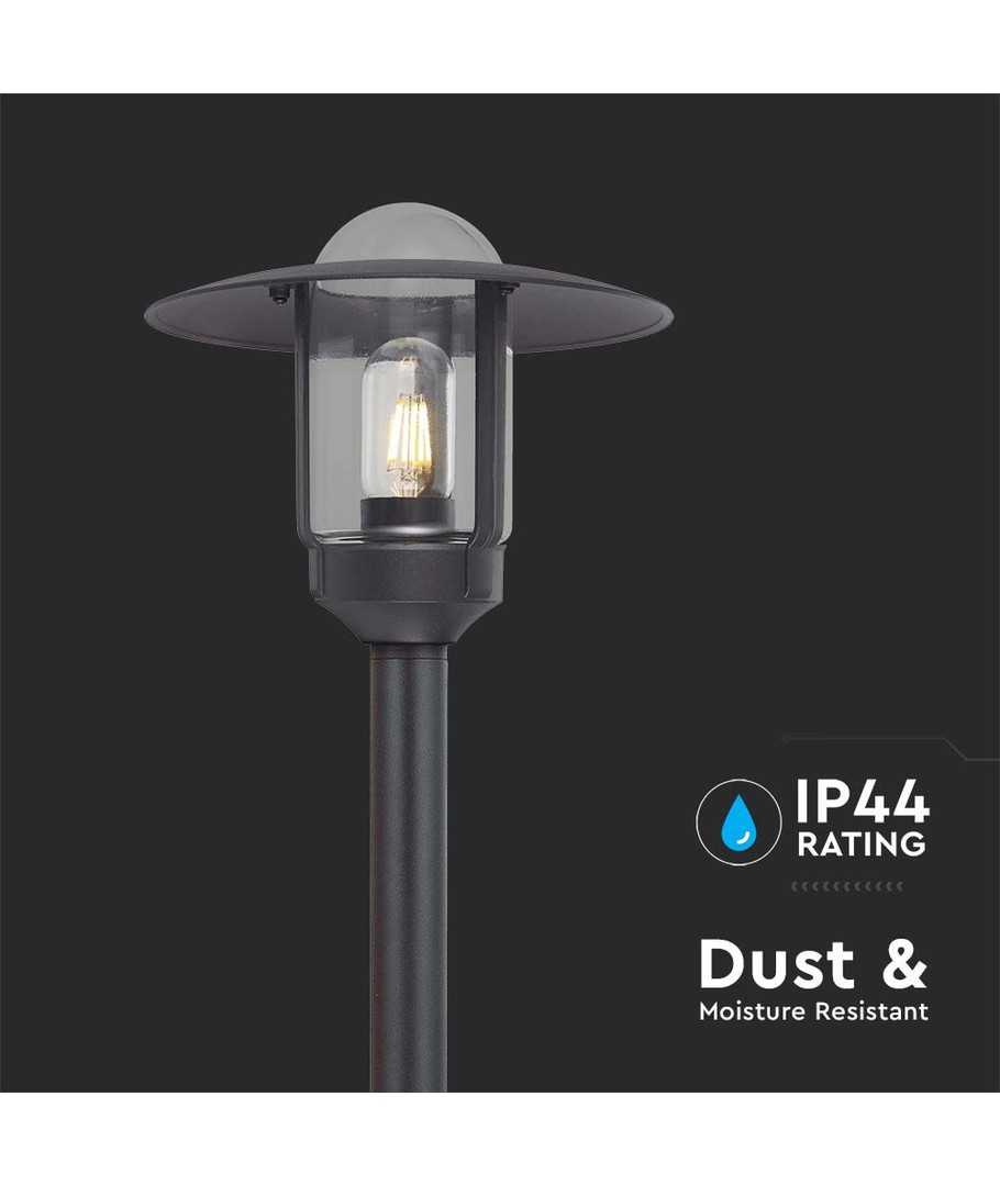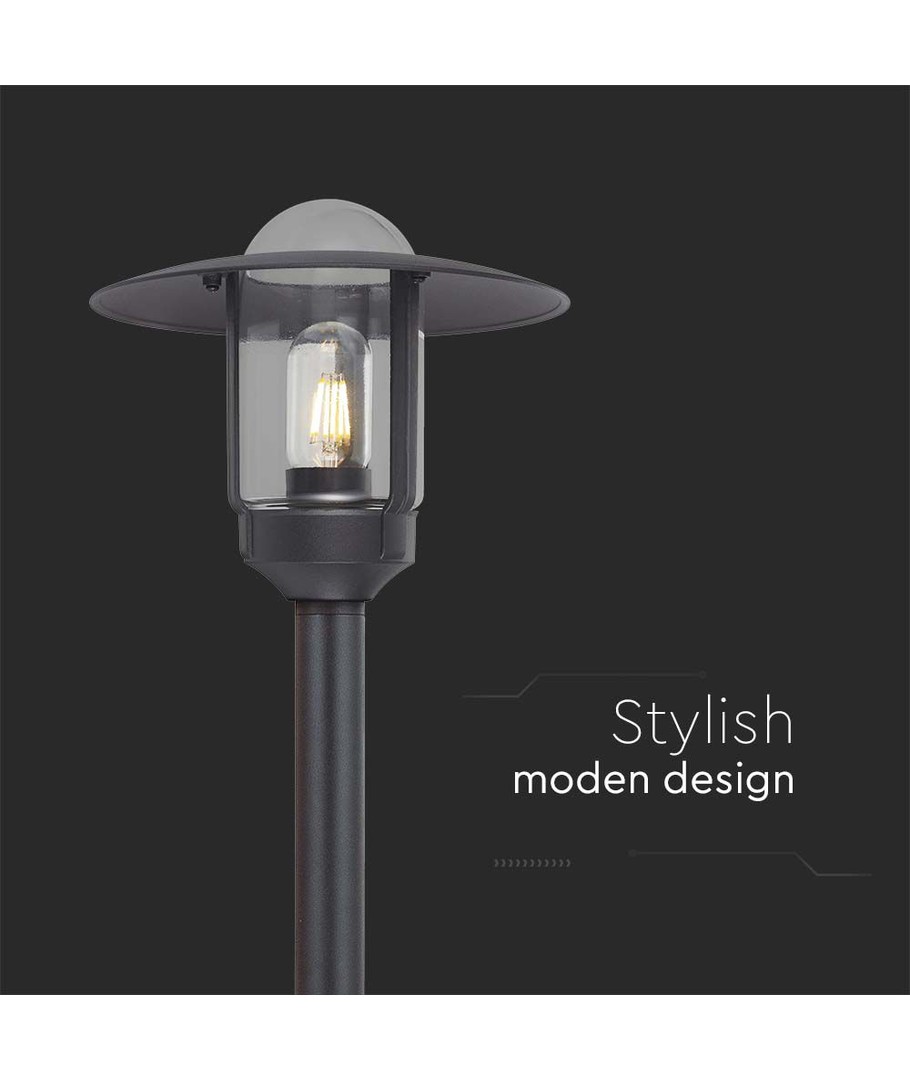 Huvudegenskaper:Installationen av denna stolplampa är enkel och smidig, och tack vare dess hållbara design kommer den att stå emot väder och vind under lång tid. Med rätt lampa inkopplad ger den ett starkt ljus som skapar trygghet och trevnad i utomhusmiljön. Placera den längs med gångstigen eller vid infarten för att enkelt komplettera din utomhusbelysning.