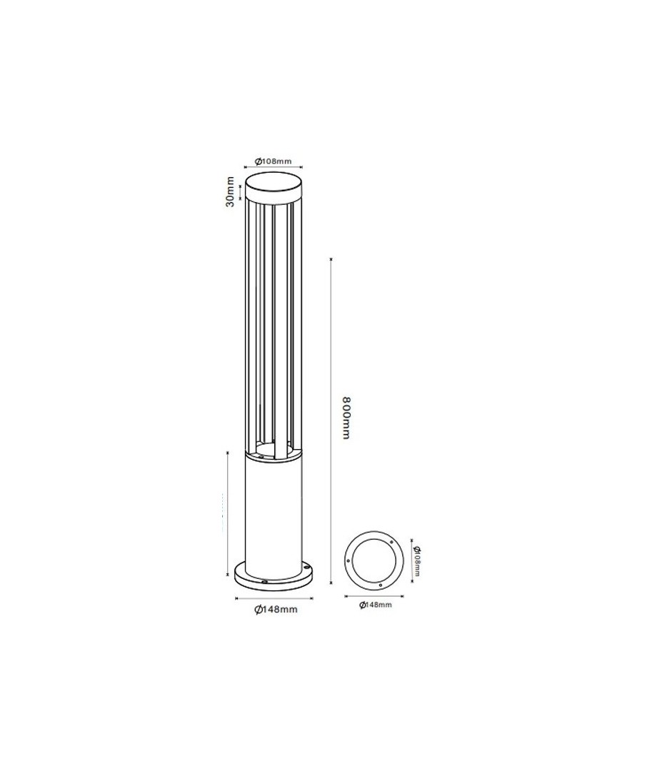 Den praktiska storleken på 800 x Ø108 mm gör det enkelt att integrera armaturen i din befintliga miljö. Med en integrerad ljuskälla är installation och underhåll problemfritt. Utnyttja dess flexibilitet för att anpassa ljussättningen på gården, terrassen eller trädgården.