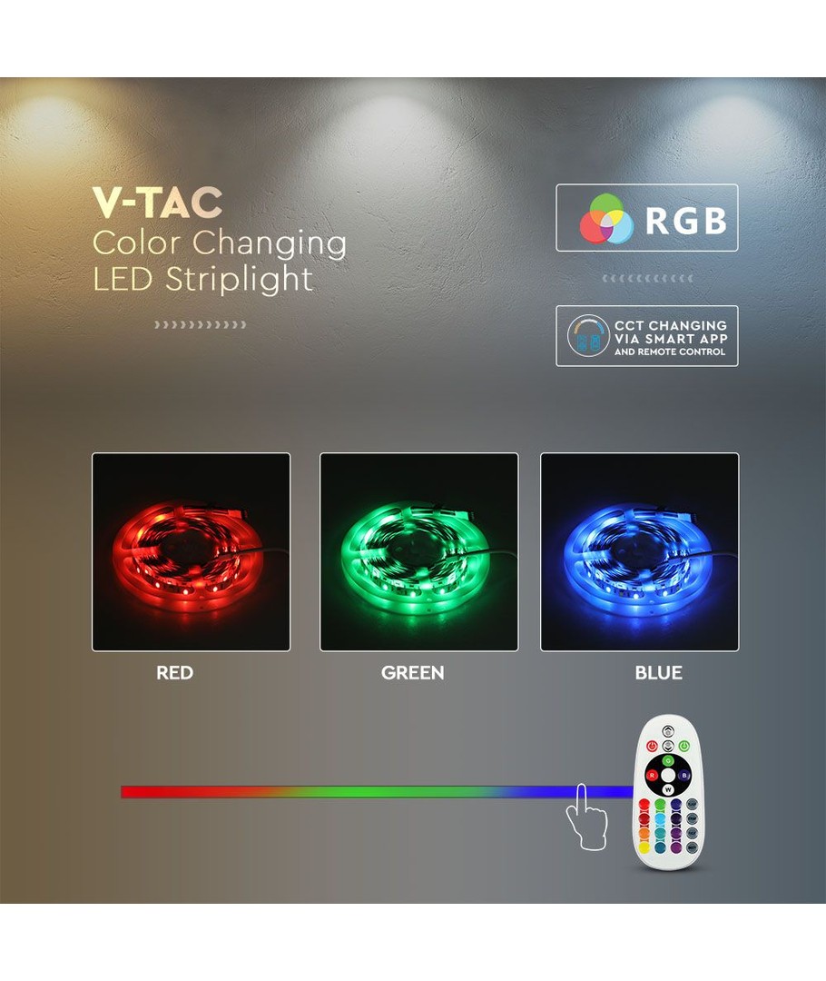 Upplev ett mångsidigt och kraftfullt ljus med vårt 5m 15W/m RGB+CCT LED strip kit, som ger färg och stämning till alla rum.