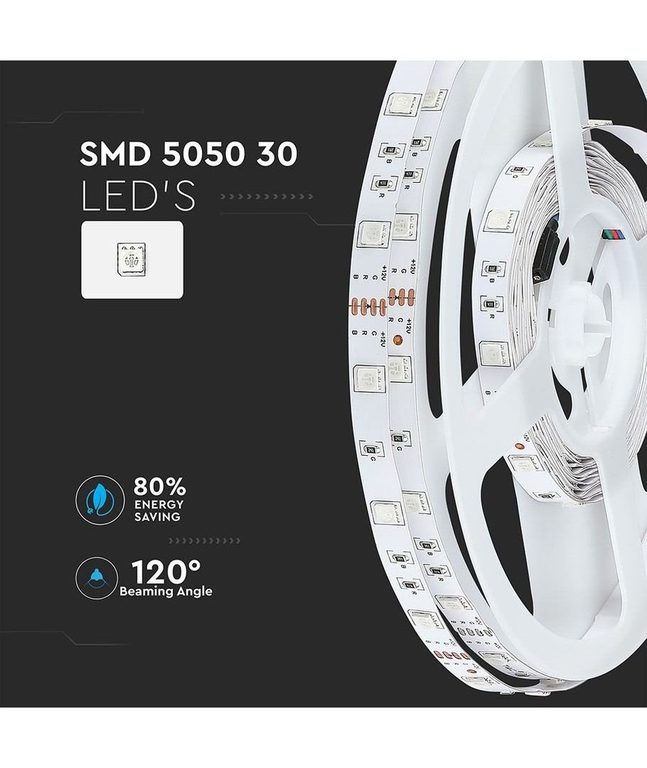 Upplev den mångsidiga belysningen med vår 5 meter långa RGB LED-strip. Denna LED-strip är perfekt för att skapa stämningsfulla effekter i hemmet eller på kontoret.