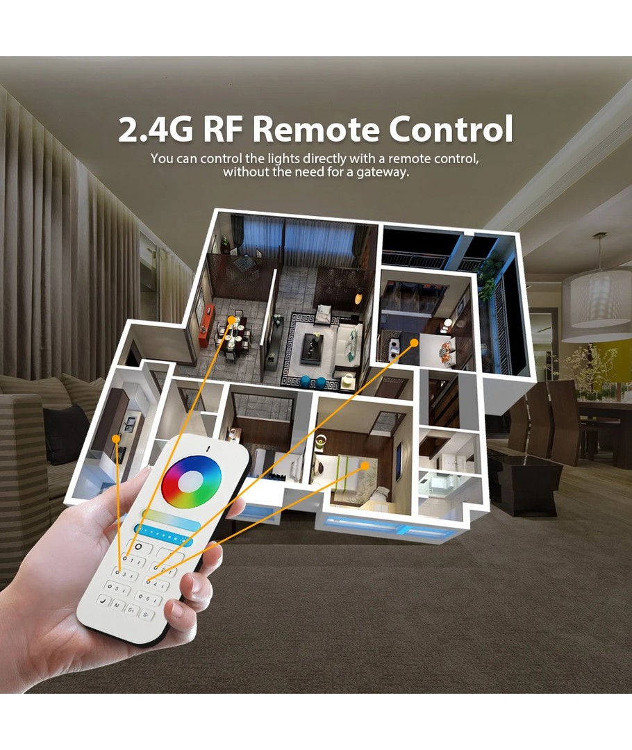 Styr 12V, 24V, 230V och dimning, CCT, RGB - allt med samma fjärrkontroll.