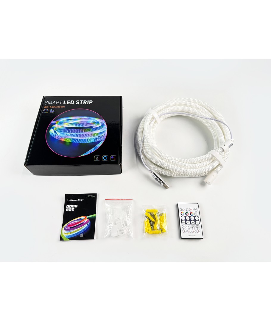 5m RGBIC Neon flex-slang - USB, Vävt rep, Bluetooth App, fjärrkontroll, Komplett set Expandera