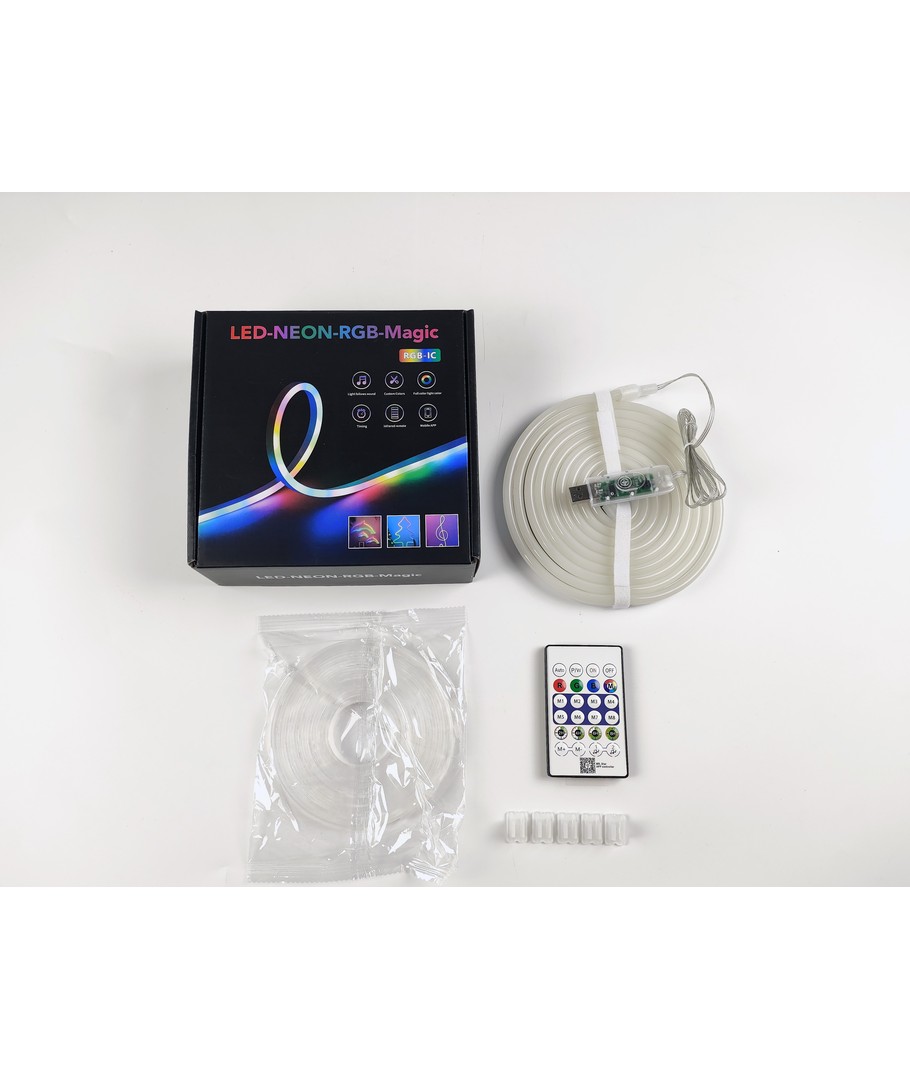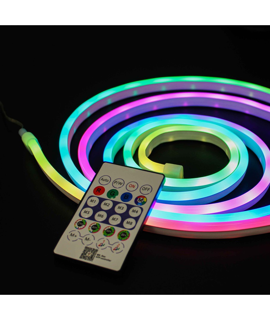 Upplev en värld av färger med vår 3W/m RGBIC 7x15 Neon Flex strip - en 250cm RGBIC neon flex, som ger ljus och liv till vilket rum som helst med sitt dynamiska färgspel och flexibla design.