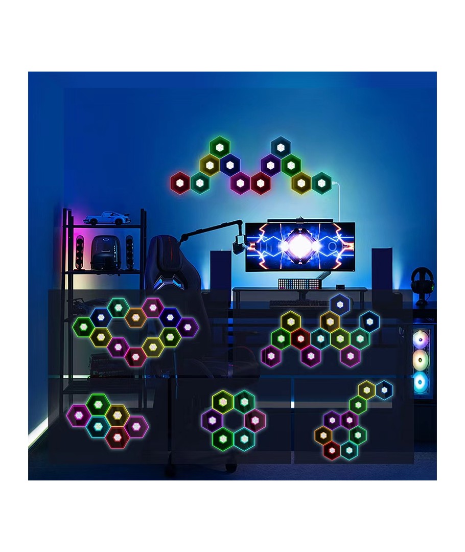 Med RGBIC Hexagon Väggljus är ditt gamingrum inte bara ett rum – det är en upplevelse du inte får missa!