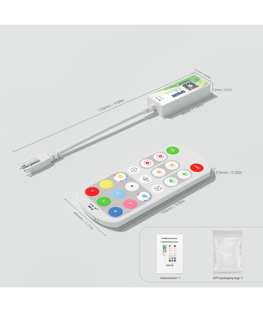 Bluetooth, RF trådlös, slim fjärrkontroll, för IP65 och IP68 RGBIC