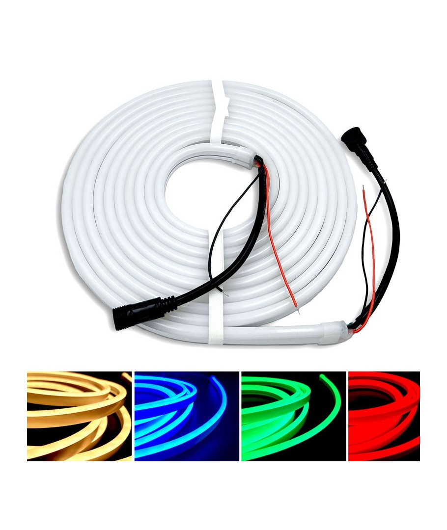 Mätande 8 x 16 mm i dimension, är denna neon flex strip idealisk för en mängd olika installationsområden, både inomhus och utomhus. Dess robusta IP65-klassificering gör den motståndskraftig mot vattenstänk och regn, vilket gör den perfekt för utomhusbruk.