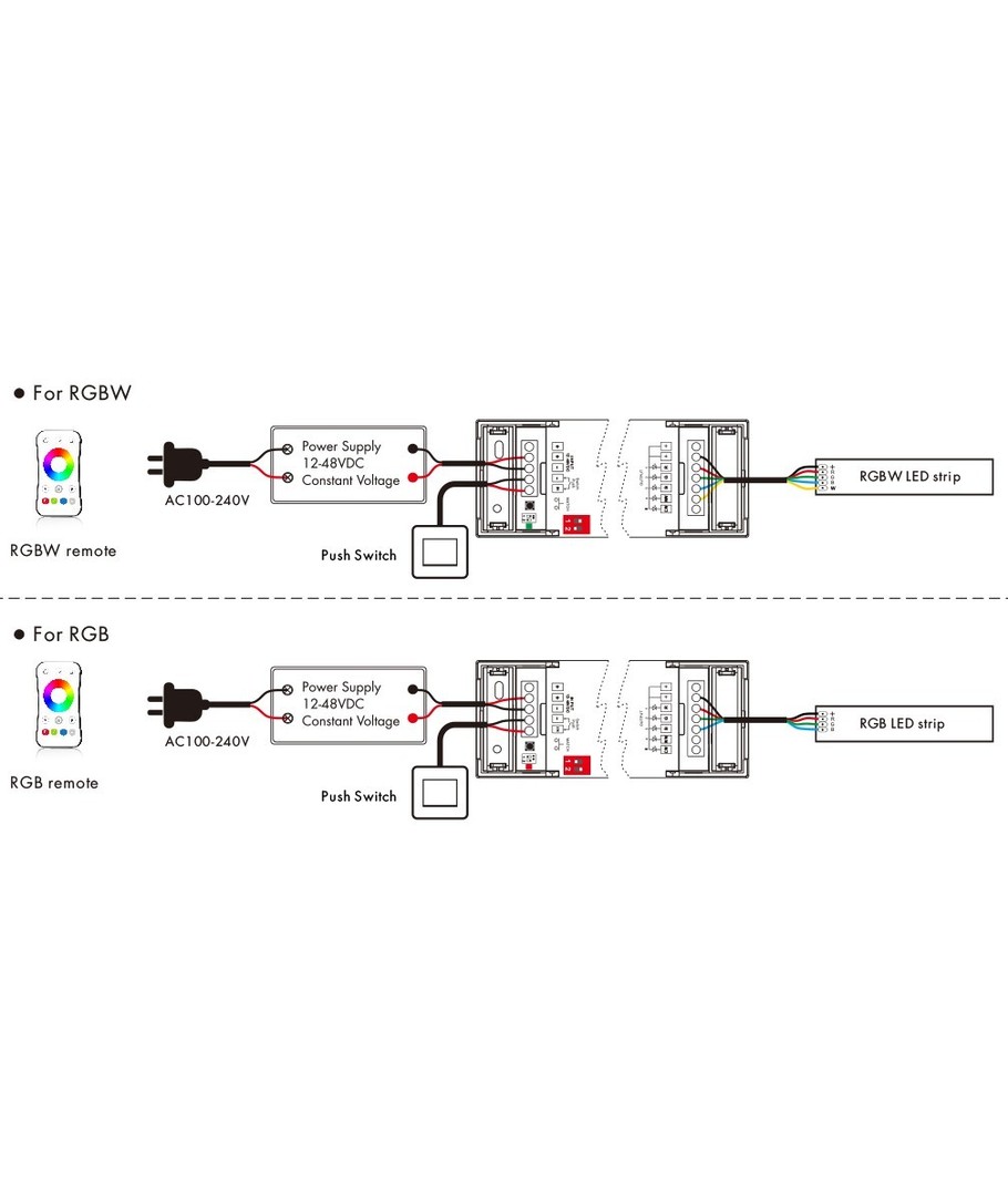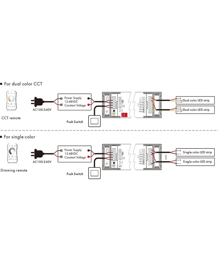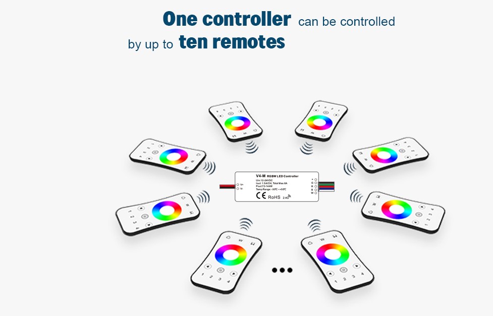 Styr 12V, 24V, 230V och dimning, CCT, RGB - allt med samma fjärrkontroll.
