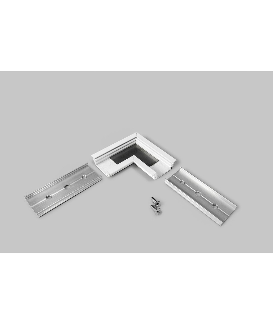 Profilsamlare GROOVE14 90DEG i vitlackerad finish är en mångsidig lösning för sammanfogning av profiler i räta vinklar.