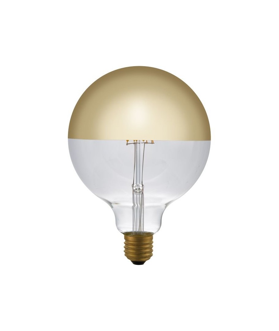 E27 4W dimbar LED-klotlampa ger ett varmt och inbjudande ljus med guldfinish och toppförspeglad design.