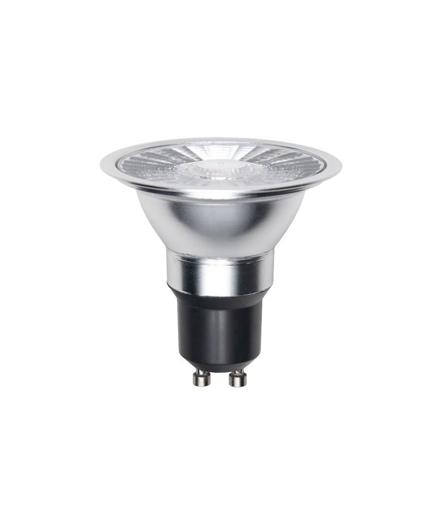 GU10 ES63 8W dimbar LED-lampa - effektiv belysning med klart glas och varmvitt ljus.- Ljusstyrka: Avger 510 lumen, vilket ger ett kraftfullt, varmvitt ljus vid 2700K.