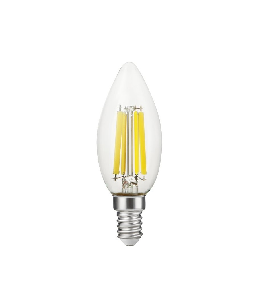 Denna snygga E14 7W dimbara LED-kronljuslampa kombinerar klassisk design med modern teknik för att leverera en behaglig belysning.