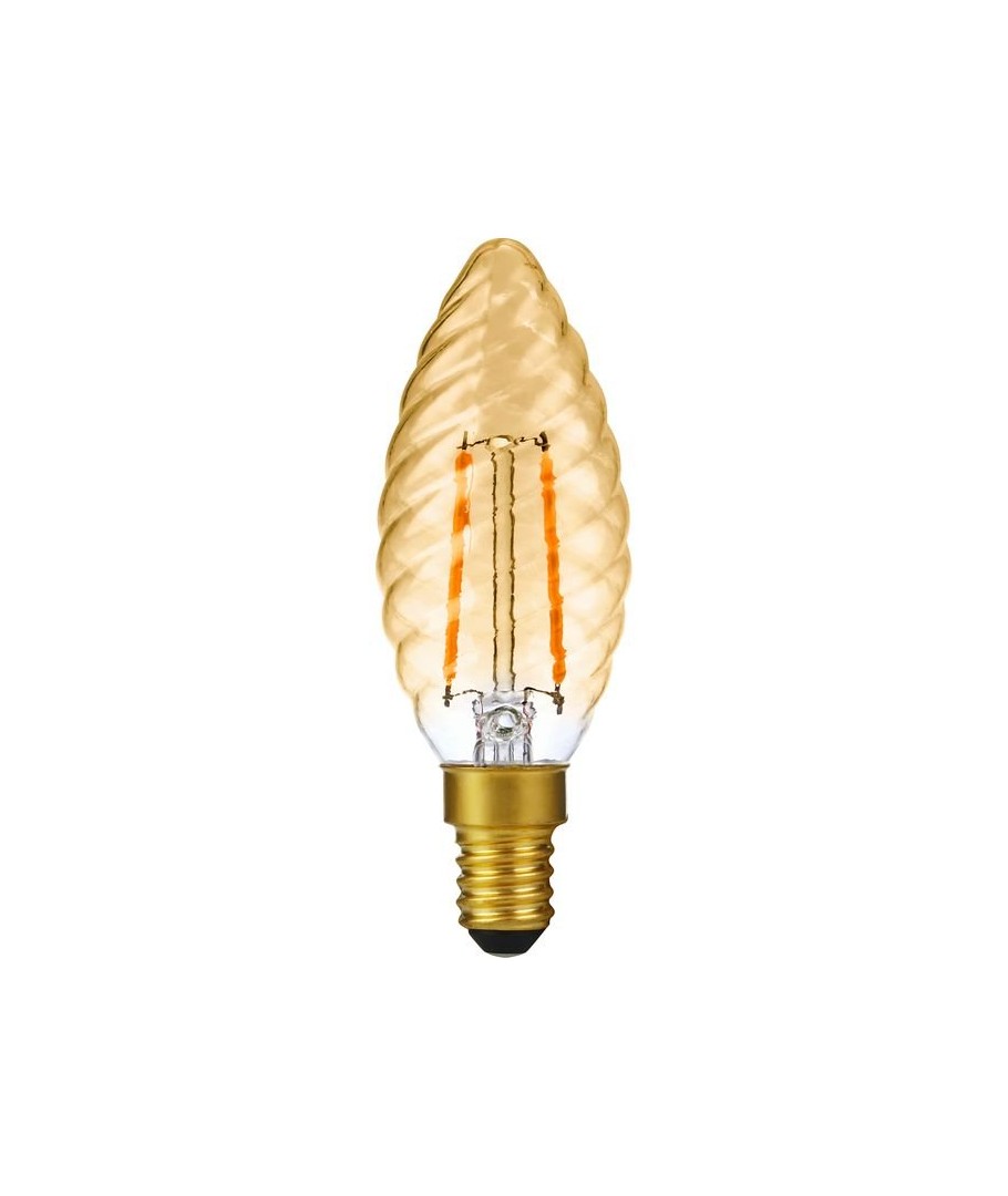 E14 2W dimbar LED-kronlampa - Twisted Candle är en dekorativ glödlampa med en vacker gyllene filamentdesign, som är idealisk för mysig belysning.