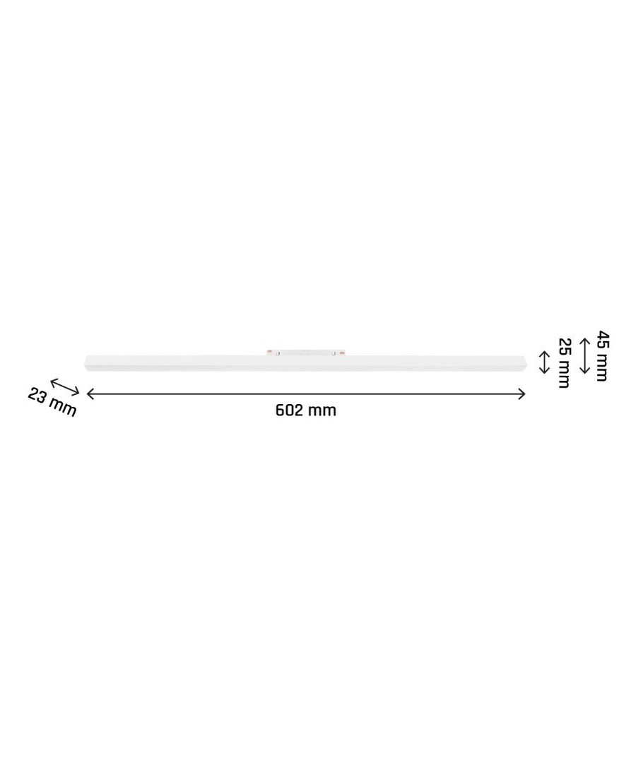 Skenans dimensioner är 23 x 602 x 42 mm och den är IP20-klassad, vilket betyder att den inte är vattentät och därför bäst lämpar sig för inomhusbruk. Produkten kommer med en integrerad ljuskälla, vilket underlättar installation och användning.