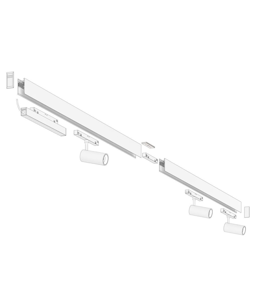 Med SHIFT 3x spotset får du 2x 1 meters skenor och 3x LED-spots, samt allt du behöver för att installera den.