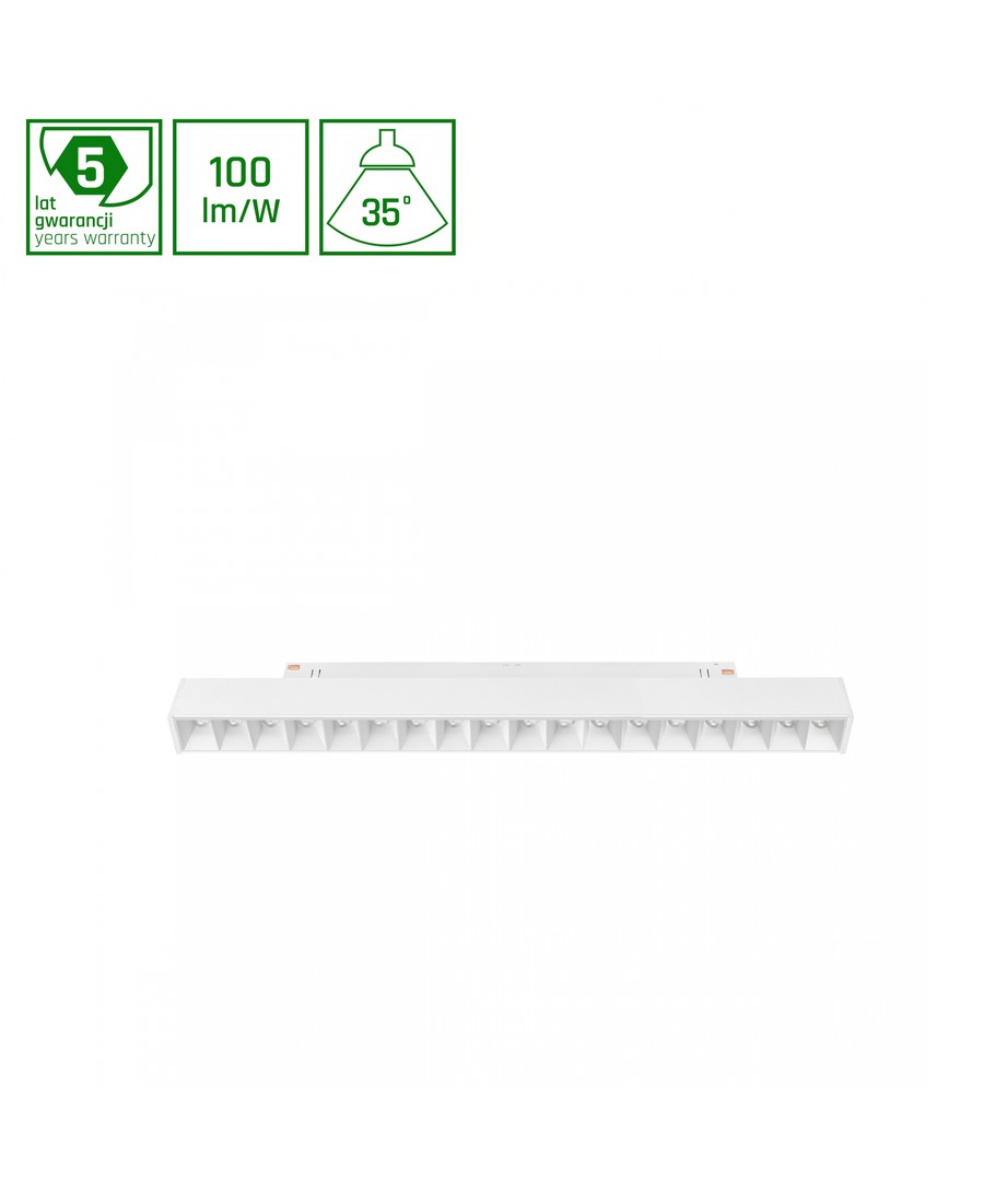 Denna innovativa skenbelysning är den perfekta lösningen för att skapa en stilren och effektiv ljusmiljö. Med 17W effekt och en fokuserad ljusvinkel på 35 grader säkerställer den ett kontrollerat ljusflöde. För dig som uppskattar hög ljuskvalitet erbjuder produkten ett RA-värde mellan 90-95, vilket innebär att ljuset återger färger på ett livfullt och naturligt sätt, lämpligt för de flesta ljusbehov.