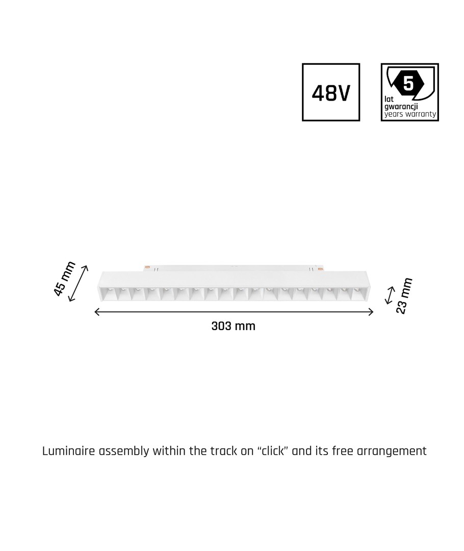 Ett måste för professionella miljöer, denna skenbelysning ansluts enkelt till 48V DC och producerar en ljusstyrka på 1150 lumen. Dess DALI-dimbarhet ger dig flexibiliteten att justera ljusstyrkan efter behov.
