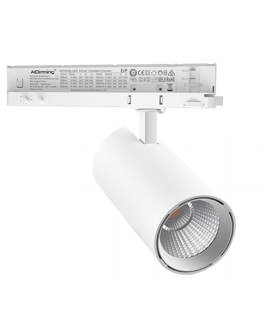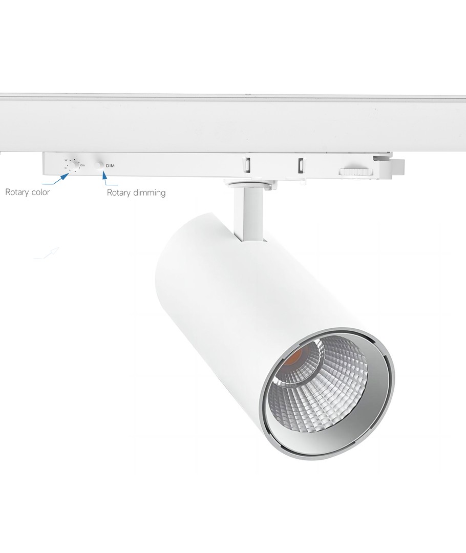 Denna högpresterande skenspot erbjuder överlägsen ljuskvalitet och flexibilitet med sin justerbara färgtemperatur (CCT) och ljusstyrka. Med en effekt på 30W och avsedd för anslutning till 230V, är den perfekt för både kommersiella och privata applikationer där ljuskvalitet och anpassningsbarhet är av vikt.