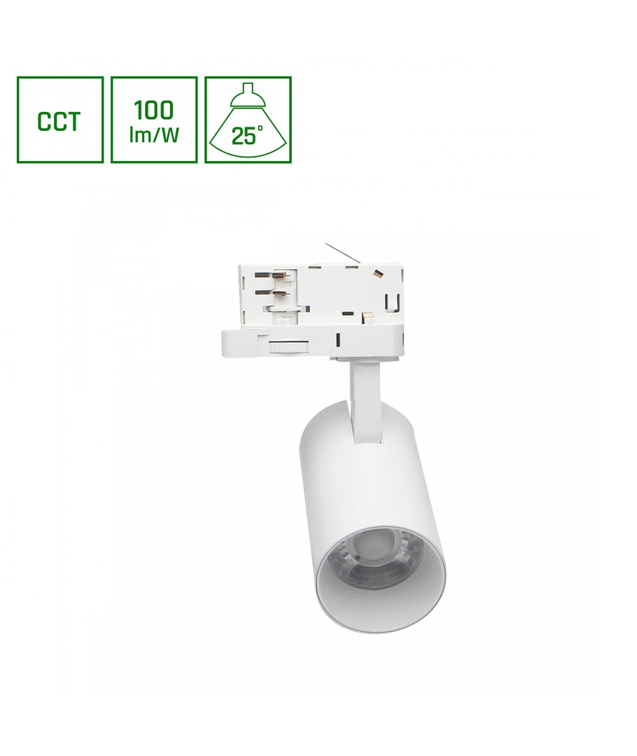 Med en effekt på 8W och anslutning till 230V, är denna skenspot en idealisk lösning för att belysa olika utrymmen i ditt hem eller arbetsplats. Dess ljusstyrka på 600 lumen och fokuserat ljus på 25 grader säkerställer en kontrollerad belysning som passar utmärkt för att framhäva speciella områden eller detaljer.